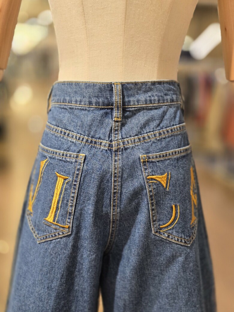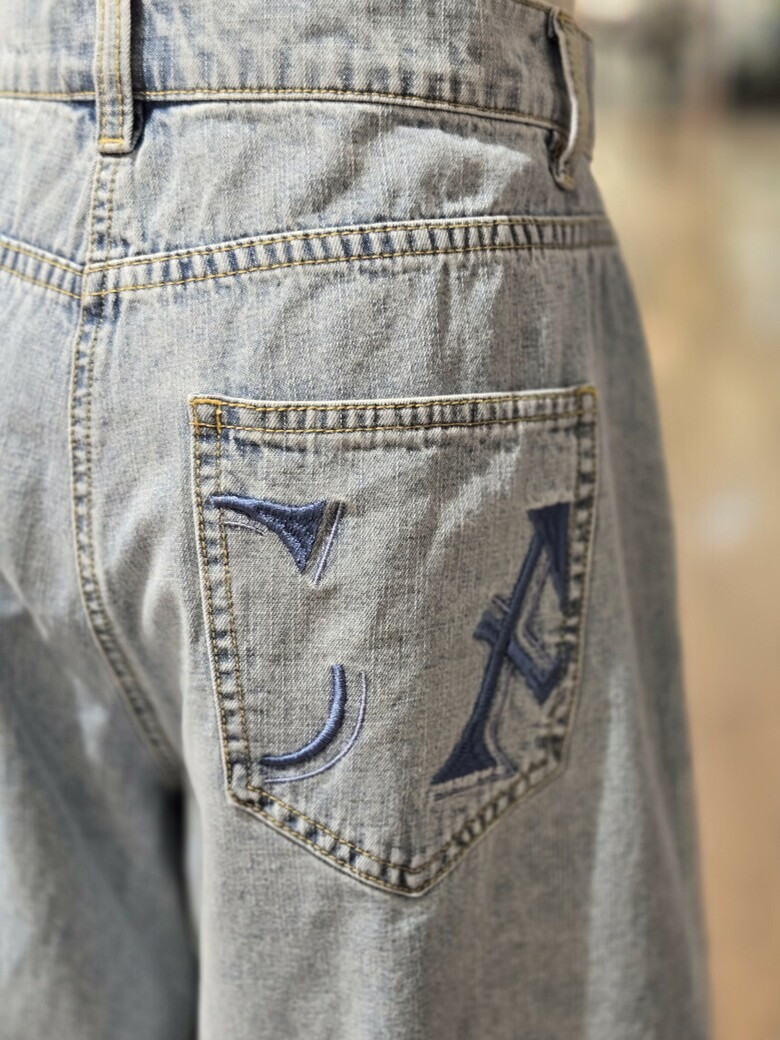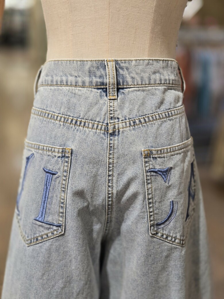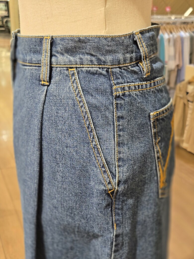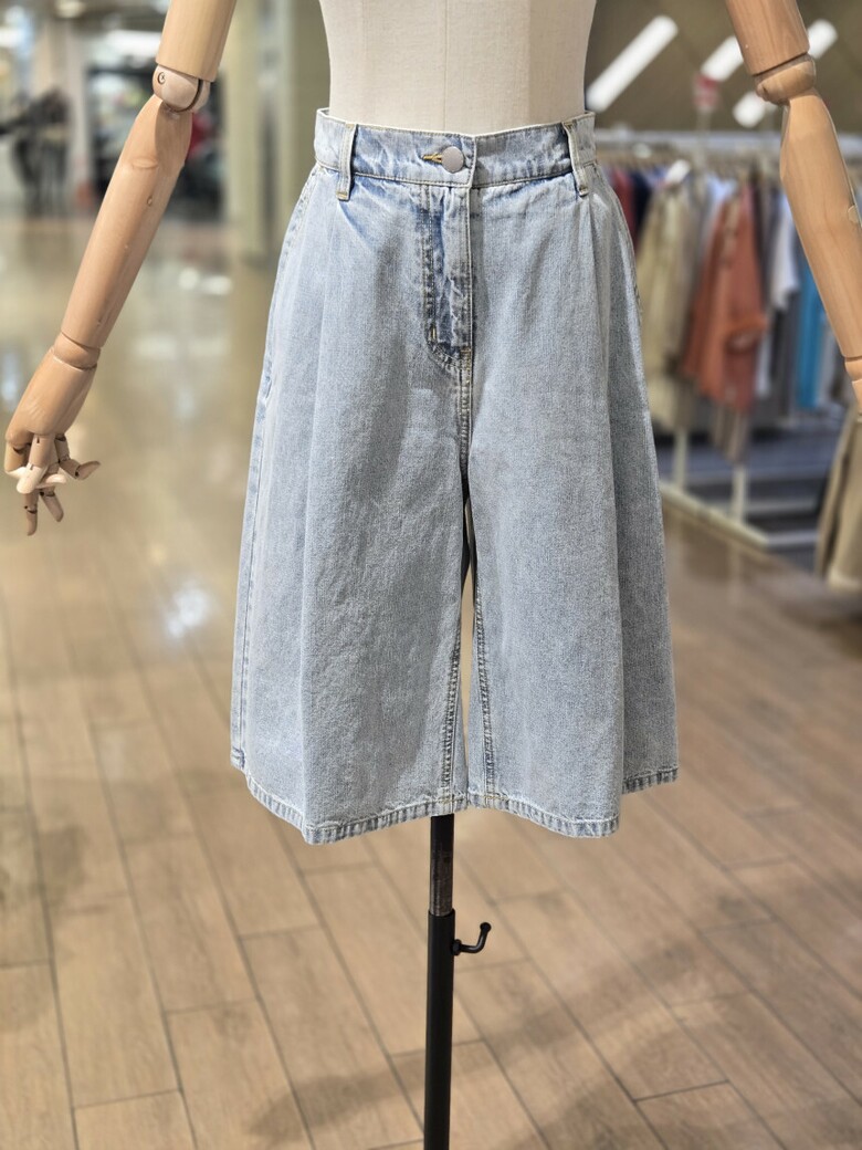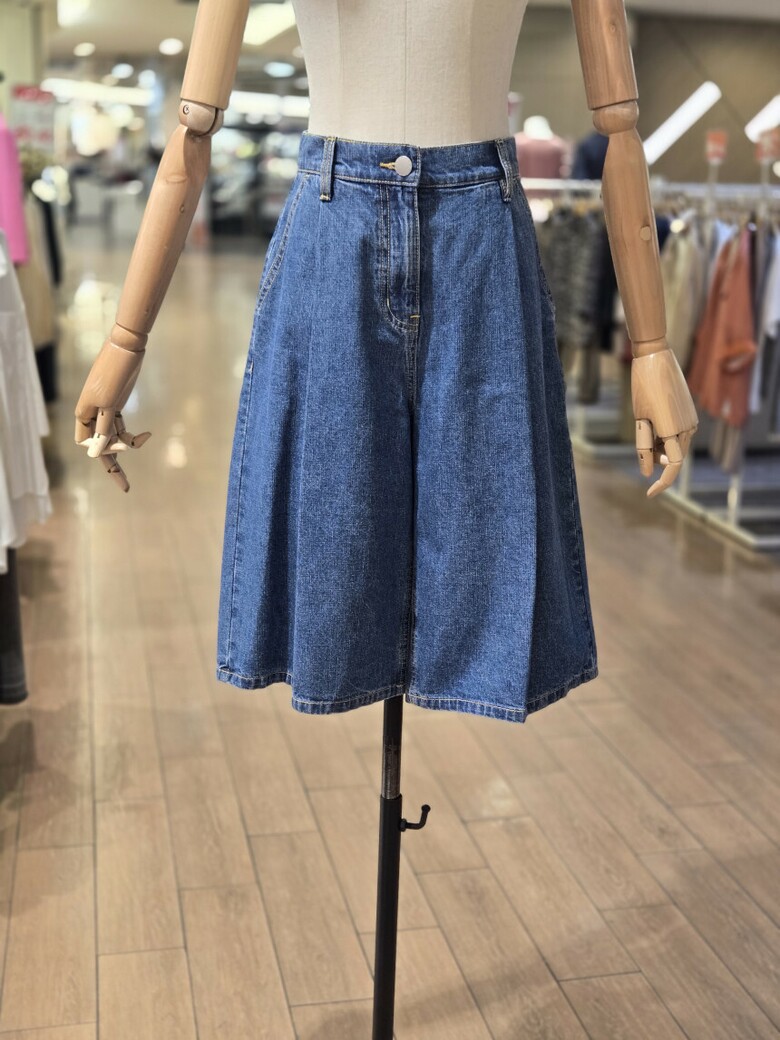 [발렌시아]데님 핀턱 힙자수 하프팬츠256GP80