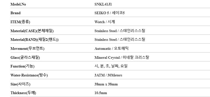 | 3. 제조사 | 세이코5/MACHO-병행수입 |