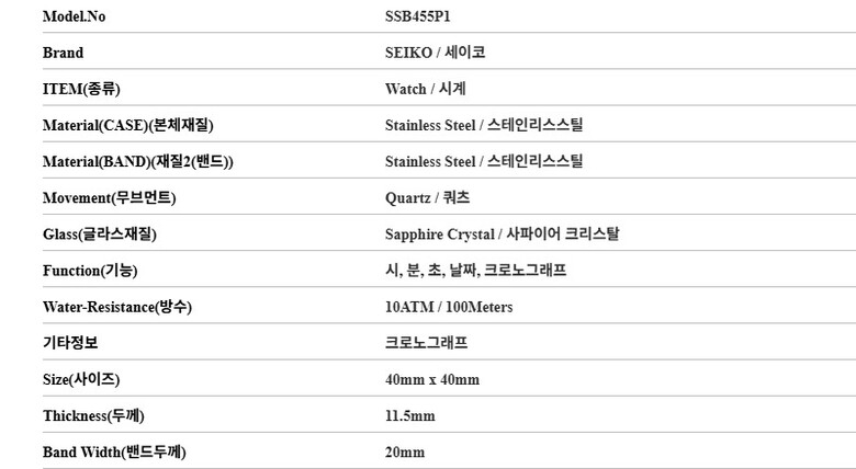 세이코 SSB455P1 크로노그래프 남성 메탈시계