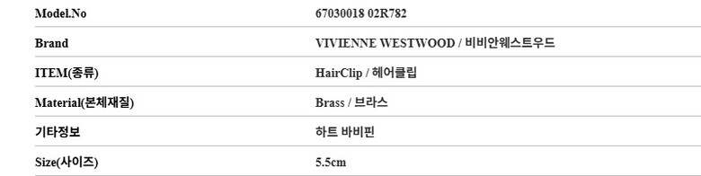 비비안웨스트우드 67030018 02R782 페트라 하트 바비핀 헤어클립