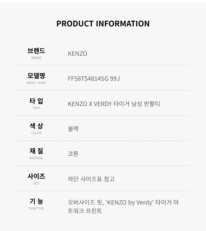 겐조 FF58TS4814SG 99J KENZO X VERDY 타이거 남성 반팔티