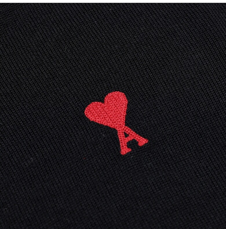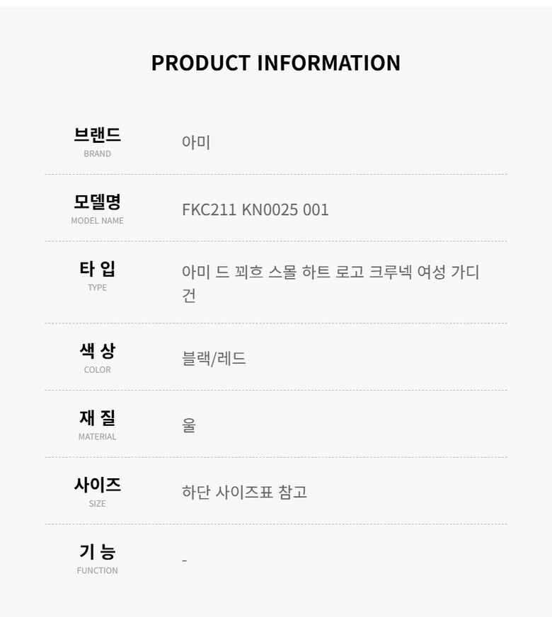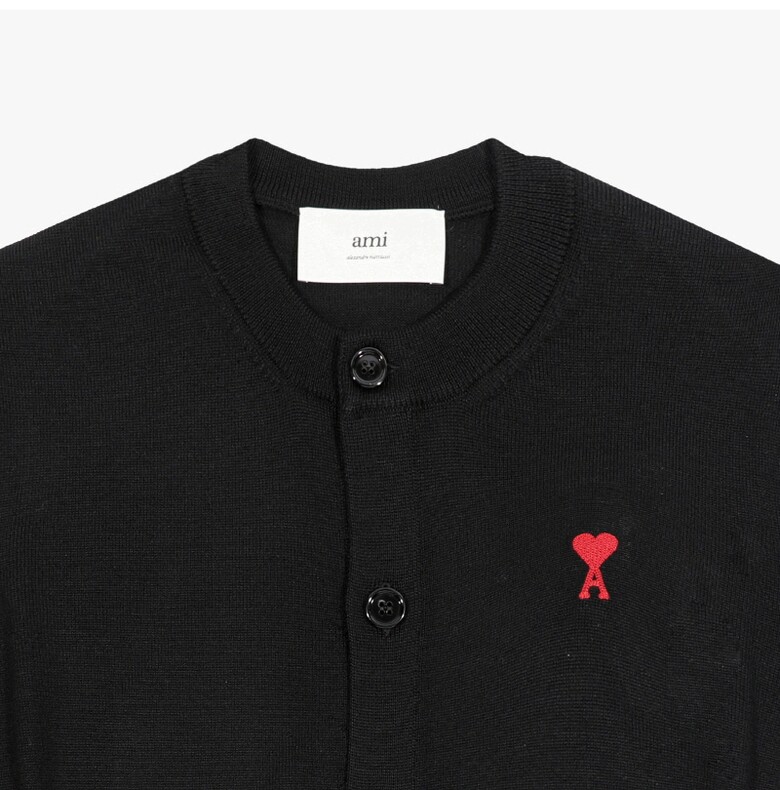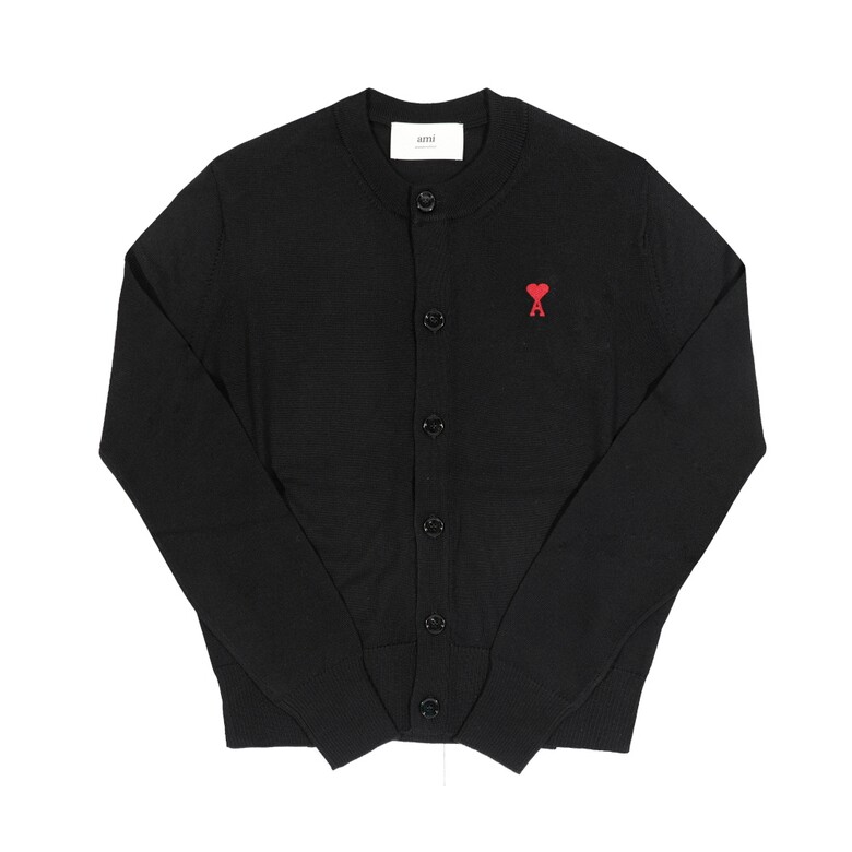 AMI FKC211 KN0025 001 스몰 하트 로고 크루넥 여성 가디건