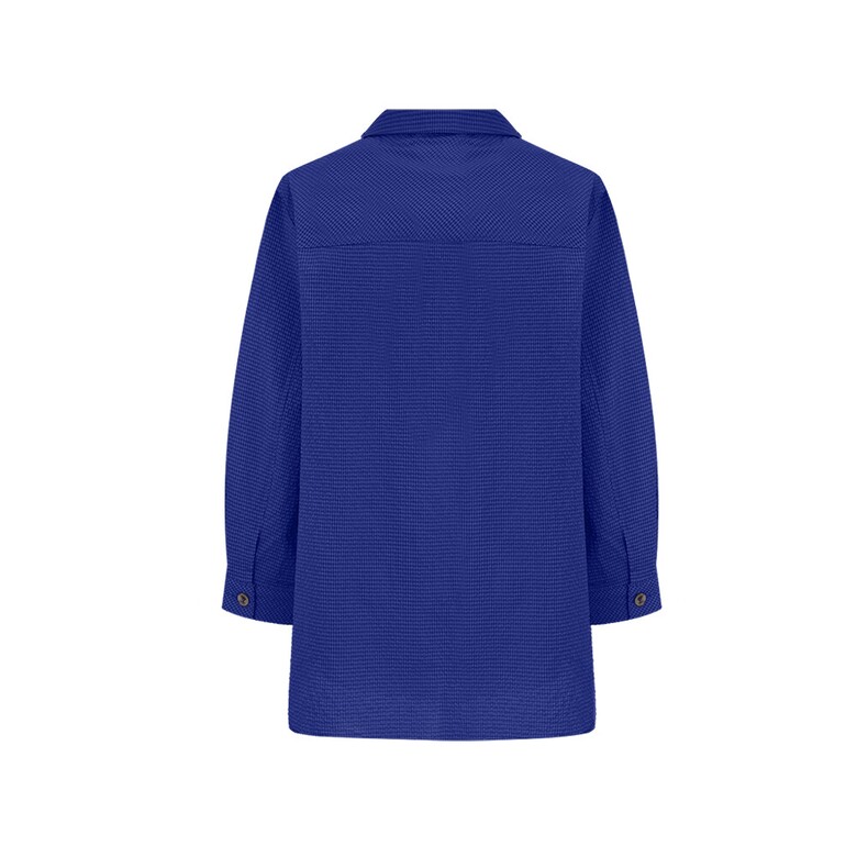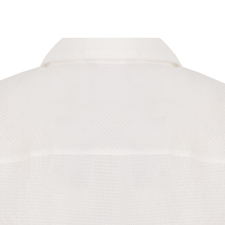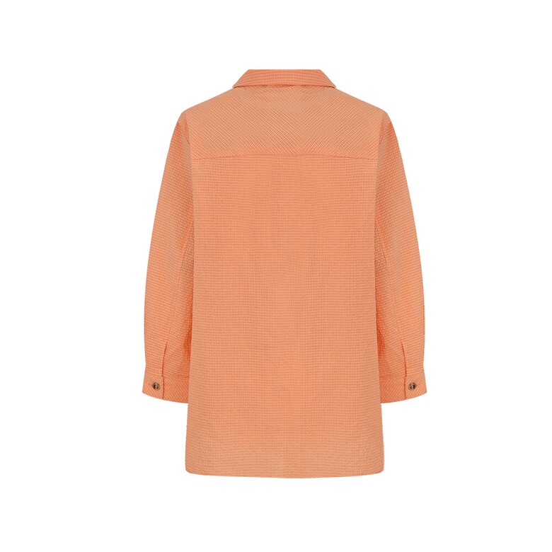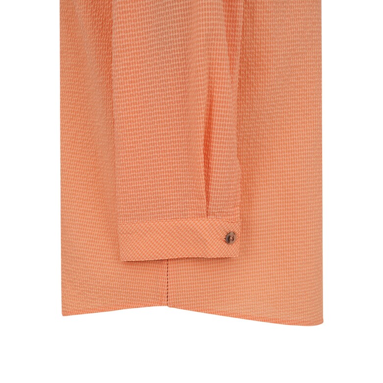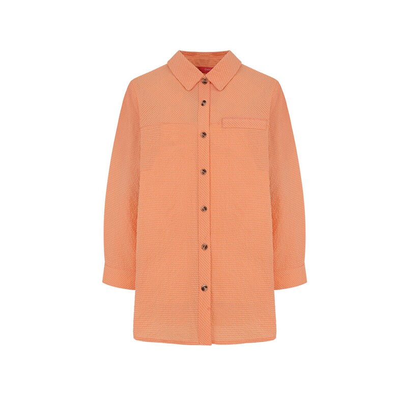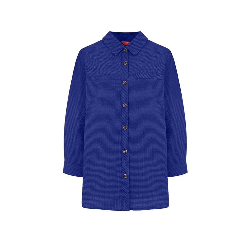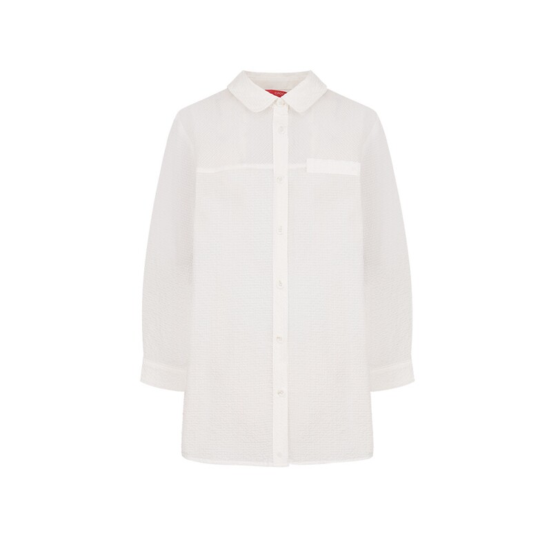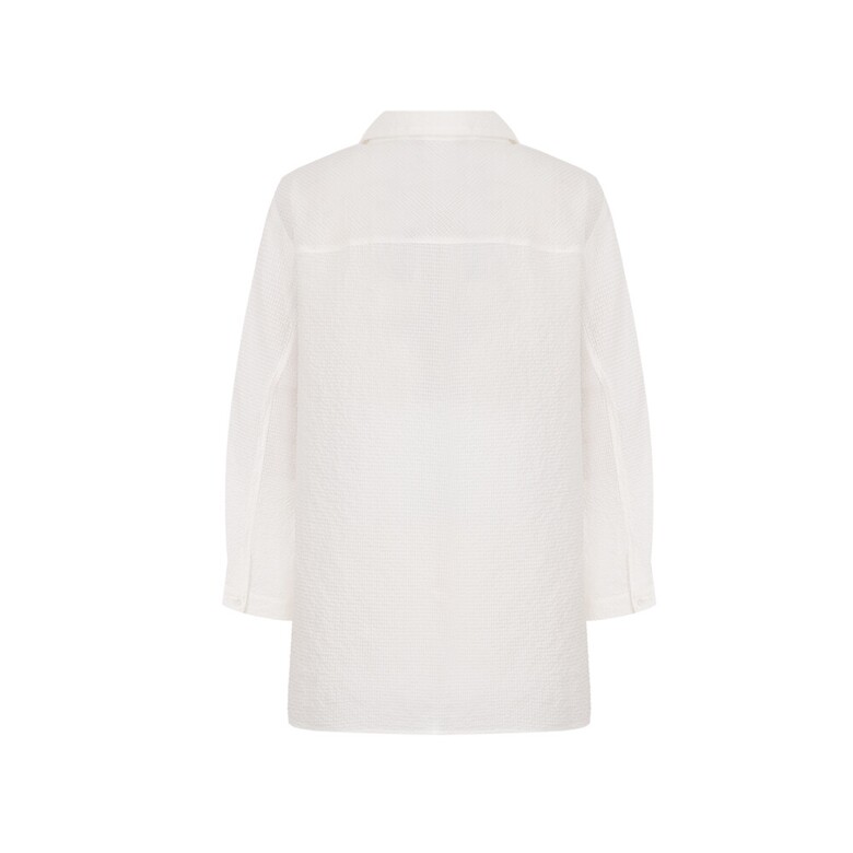 결방향을 다르게 사용한 풀오픈 형태의 블라우스. 시어서커 소재를 사용해 시어서커 특유의 청량감이 살아있는 아이템.