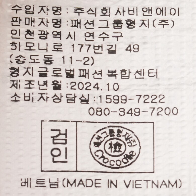 | 1. 제품 소재 (섬유의 조성 또는 혼용률을 백분율로 표시, 기능성인 경우 성적서 또는 허가서) | 상품상세참조 |