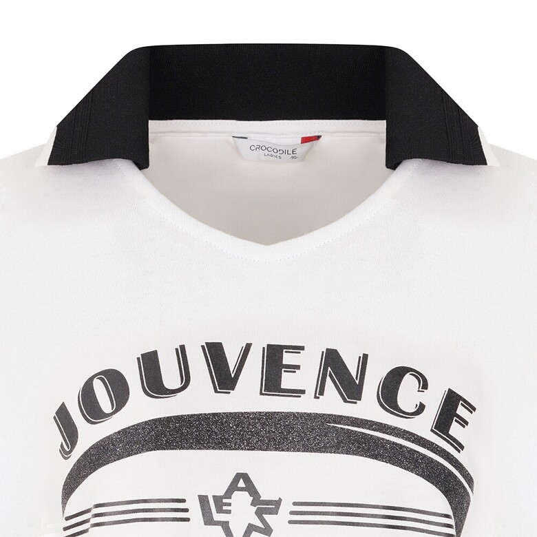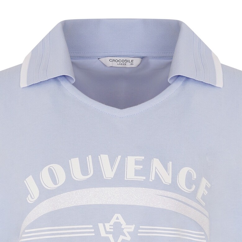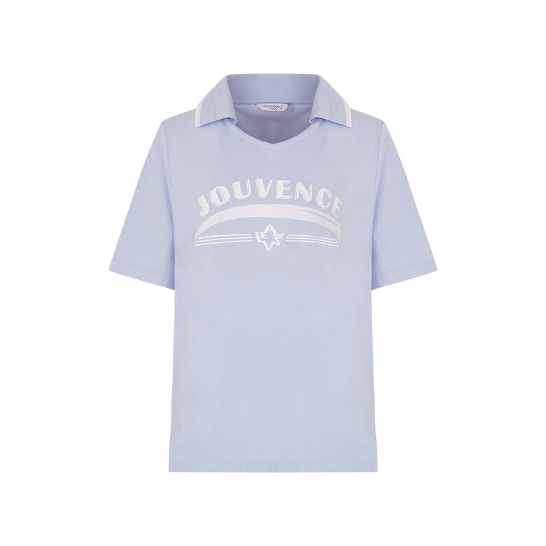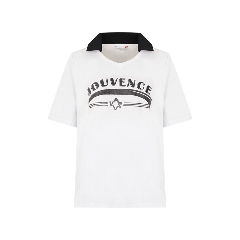 크로커다일레이디 25년 여름 감각적인 브이넥 배색 카라 반팔 티셔츠 CLEMTS121
