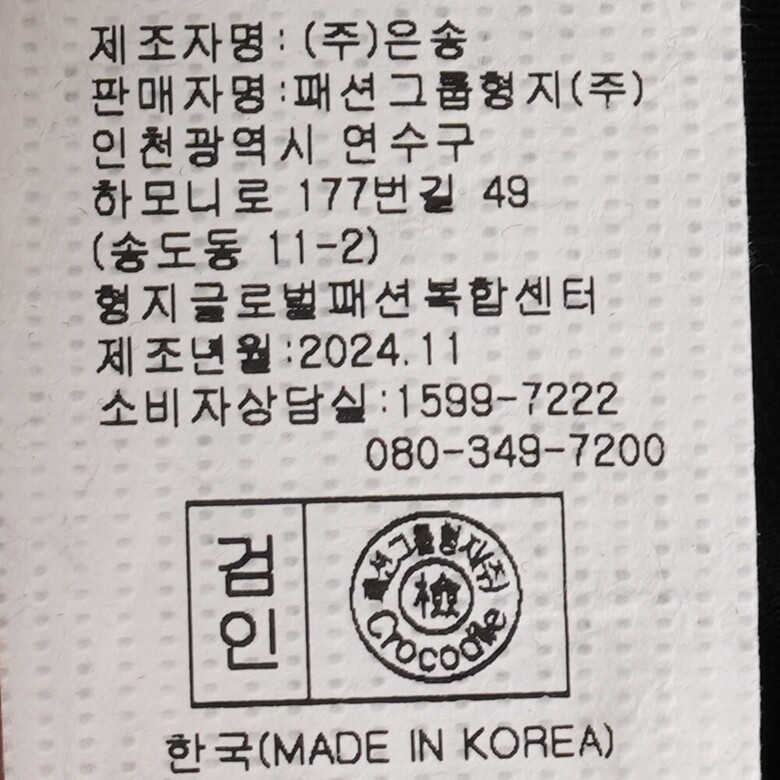 1. 제품 소재 (섬유의 조성 또는 혼용률을 백분율로 표시, 기능성인 경우 성적서 또는 허가서) | 상품상세참조 |