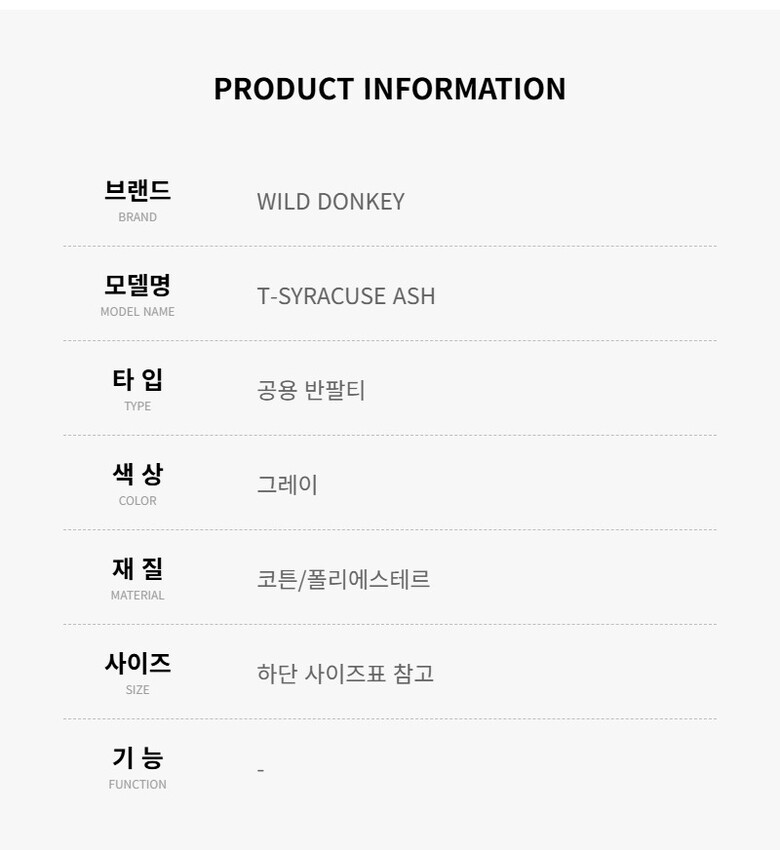와일드동키 반팔 T-SYRACUSE ASH 그래픽 프린팅 남성반팔티 여성반팔티 당일발송