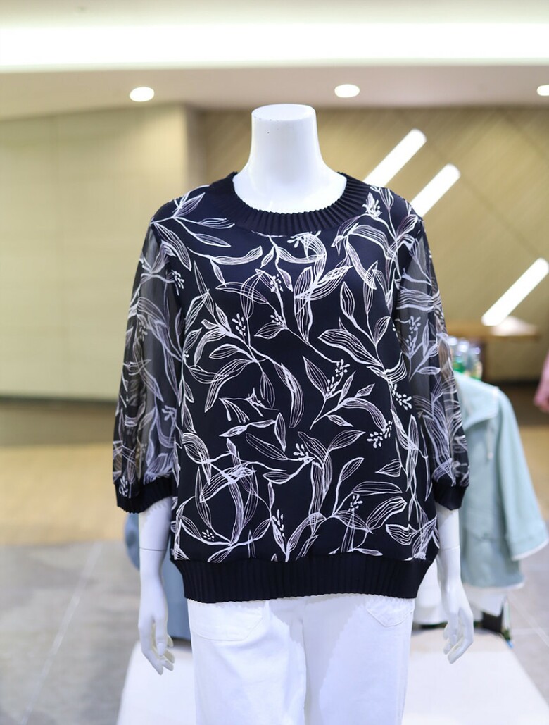 아르테 여성 시스루소매 패턴 블라우스 DRBCWB270