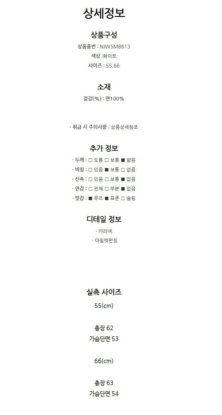 • 처음 배송된 상품상태와 다를 경우(세탁/착용 후 외출하신 경우) 반품이 불가합니다.