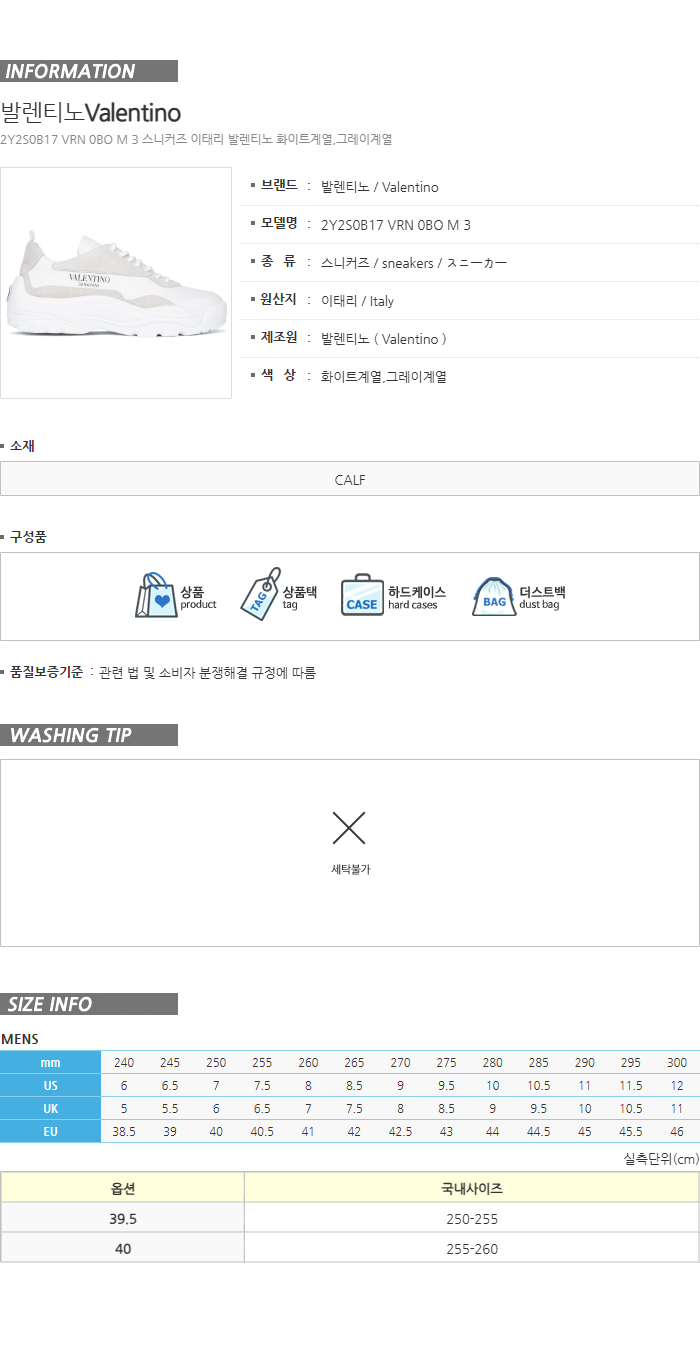 [명품] 발렌티노 반시 검보이 스니커즈 맨 2Y2S0B17