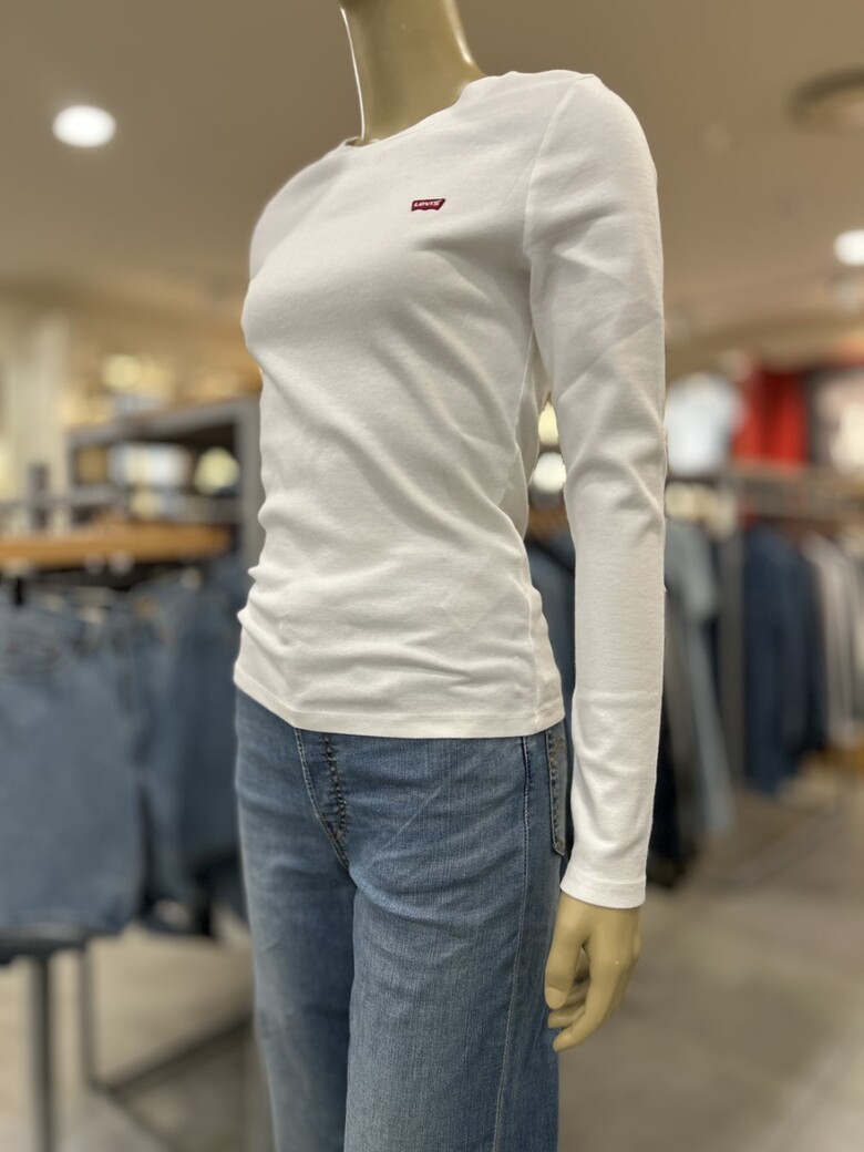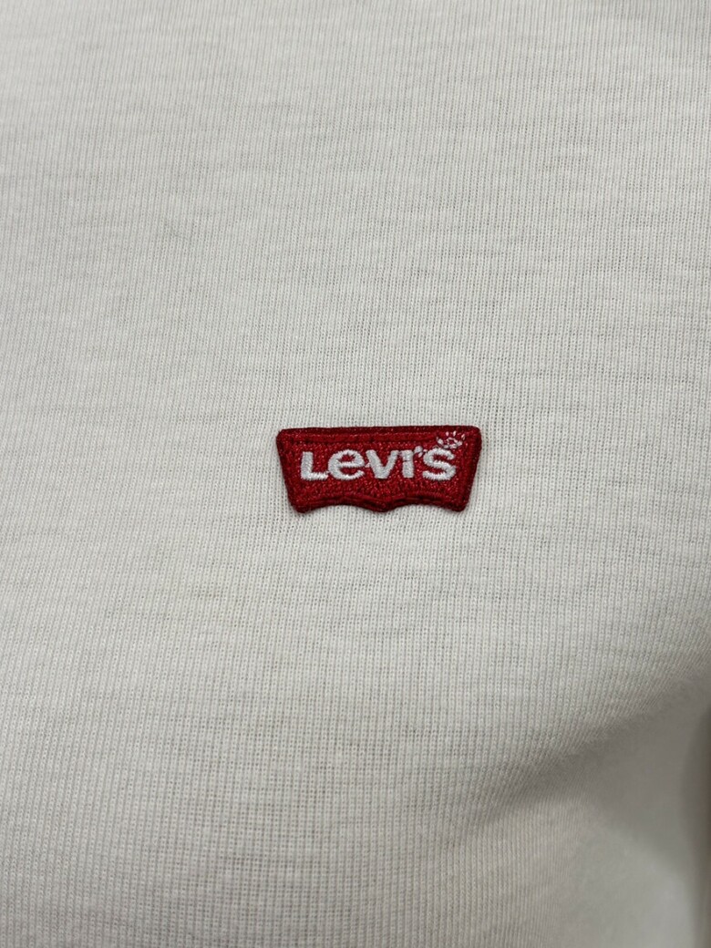 화이트컬러로 왼쪽 가슴부분에 리바이스 배트윙 로고가있는