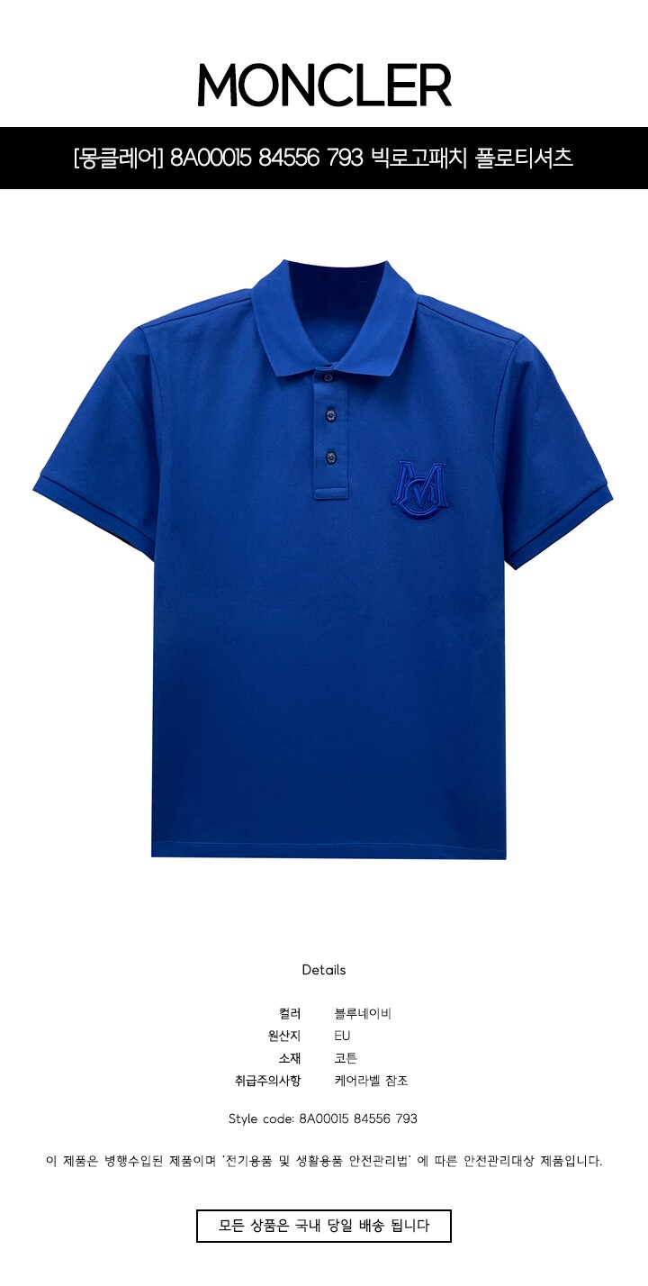[명품] 8A00015 84556 793 빅로고패치 폴로티셔츠 블루네이비 남성 티셔츠 /