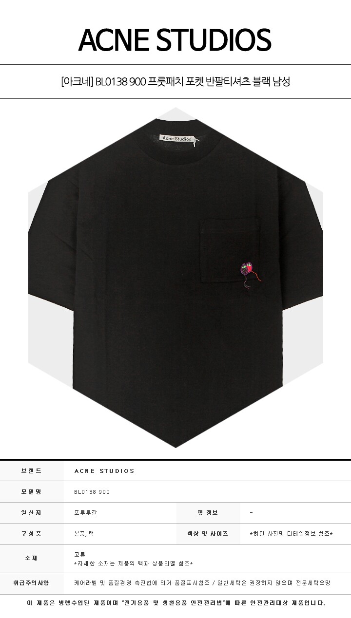 [명품] BL0138 900 프룻패치 포켓 반팔티셔츠 블랙 남성 티셔츠 /