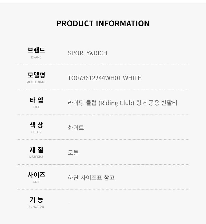 스포티앤리치 반팔 TO073612244WH01 WHITE 라이딩 클럽 링거 남성반팔티 여성반팔티 당일발송