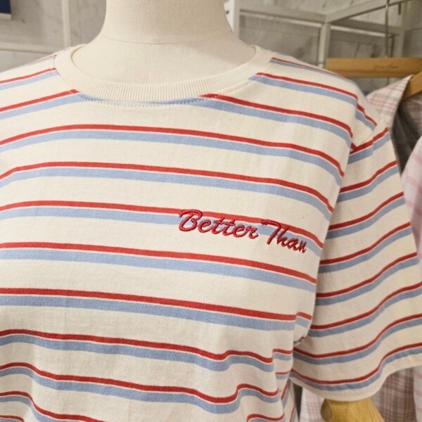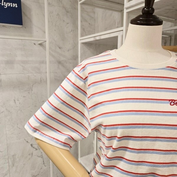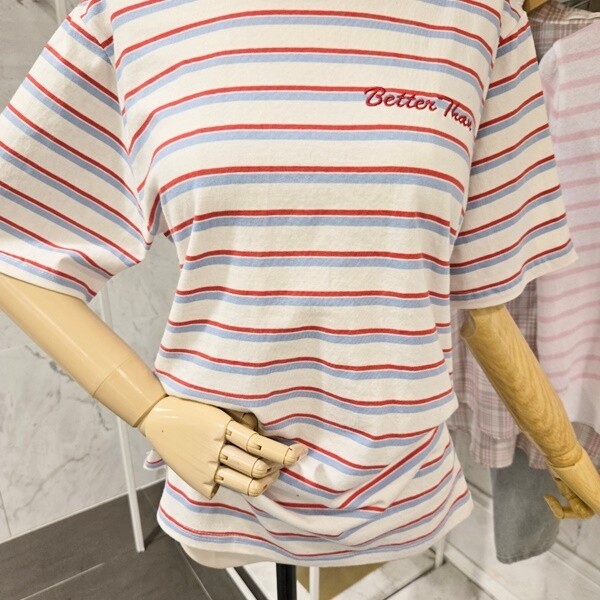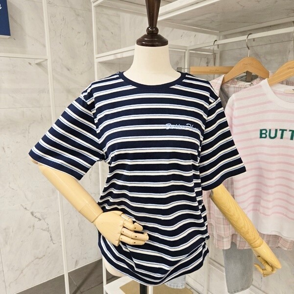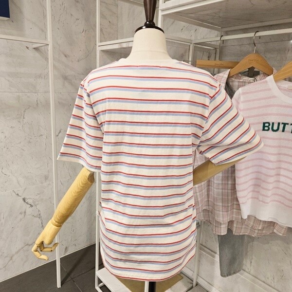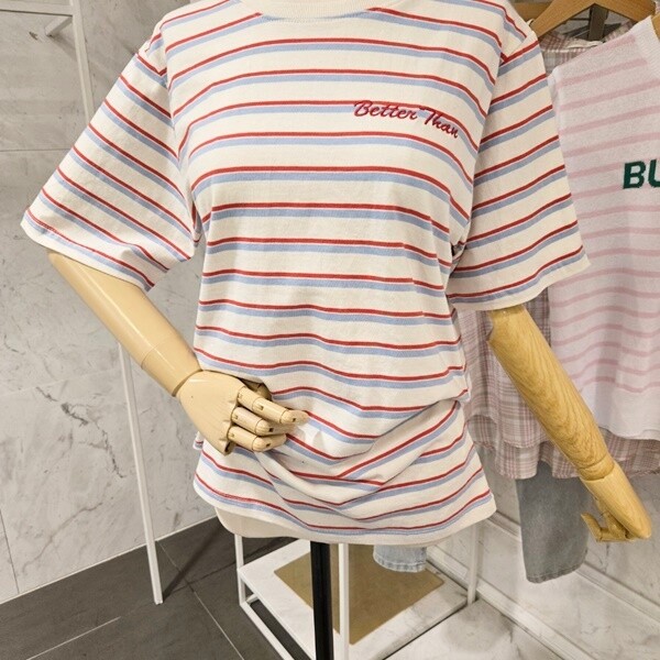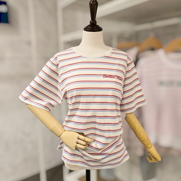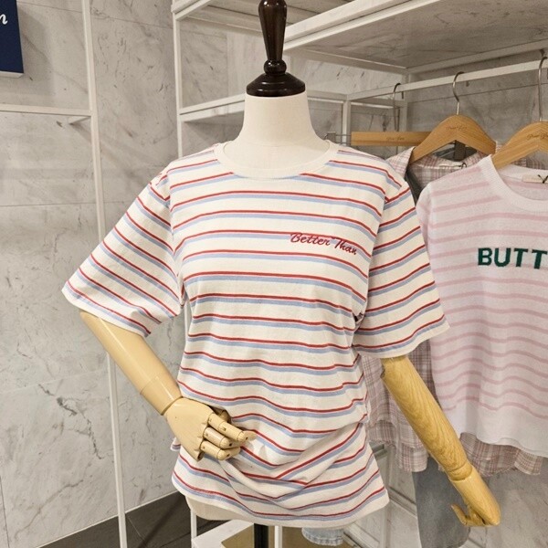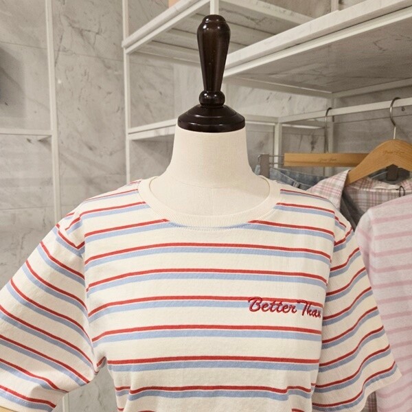 F5BTS015A_레터링 스트라이프 라운드 티셔츠