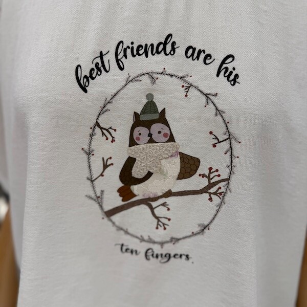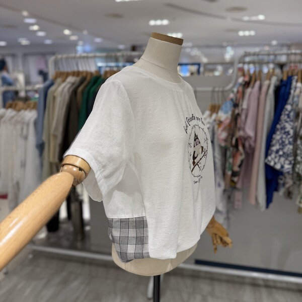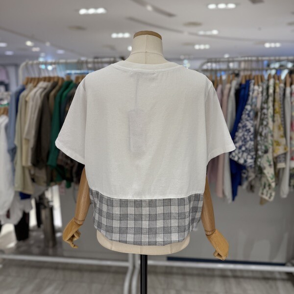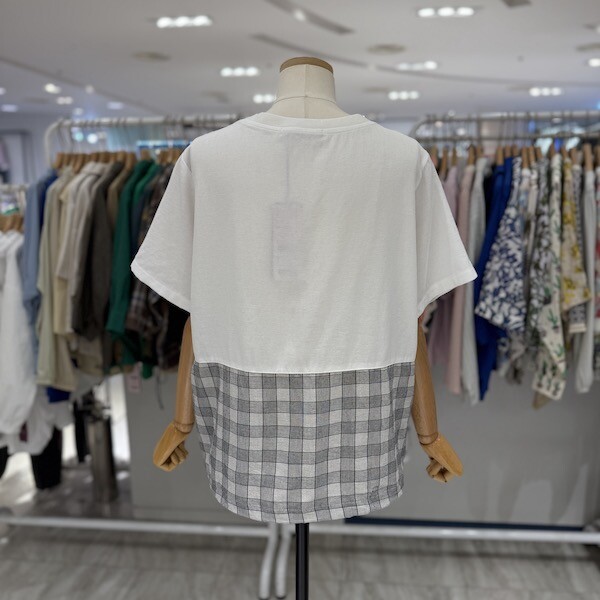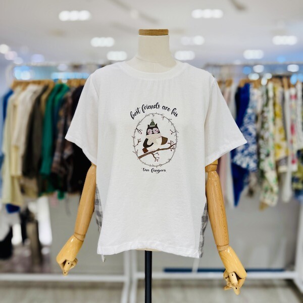 A25TS5254_체크 배색 린넨 부엉이 티셔츠