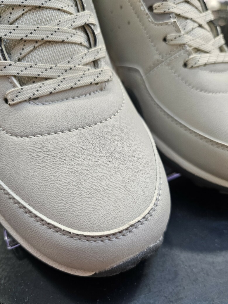 인조가죽 소재로 만들어져 물이나 습기에 강한 운동화입니다. 간단한 손질만으로도 깨끗하게 관리할 수 있어 편리합니다.