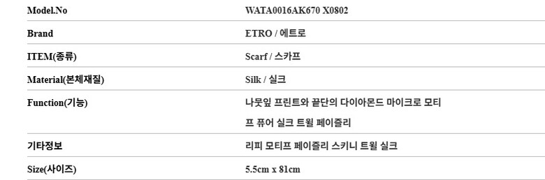 에트로 WATA0016AK670 X0802 리피 모티프 페이즐리 스키니 트윌 실크 스카프