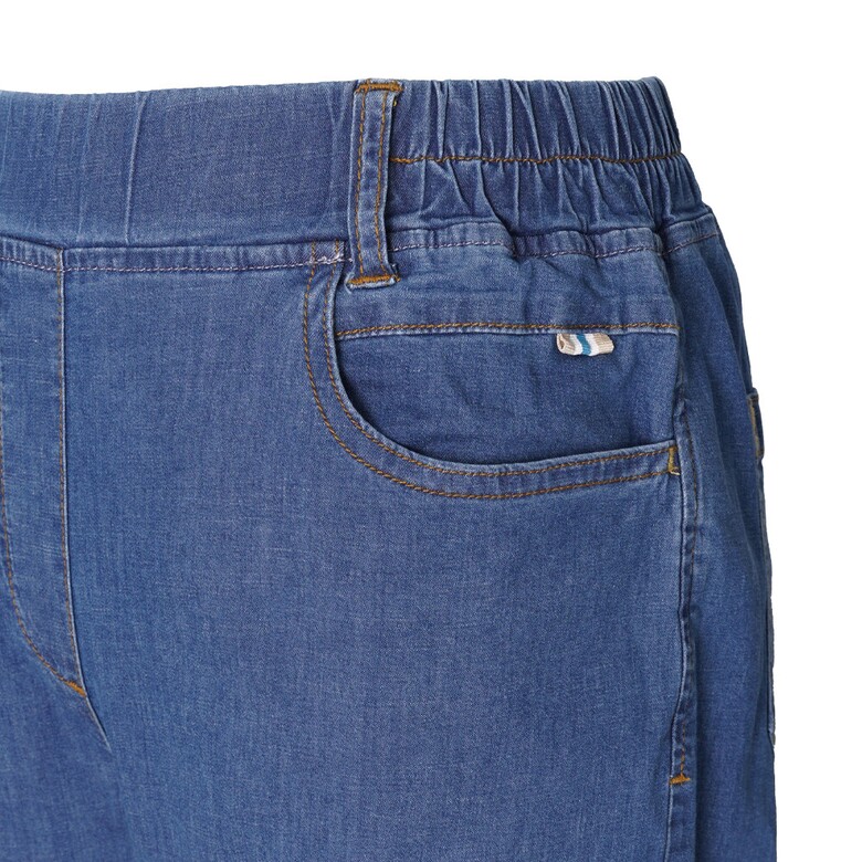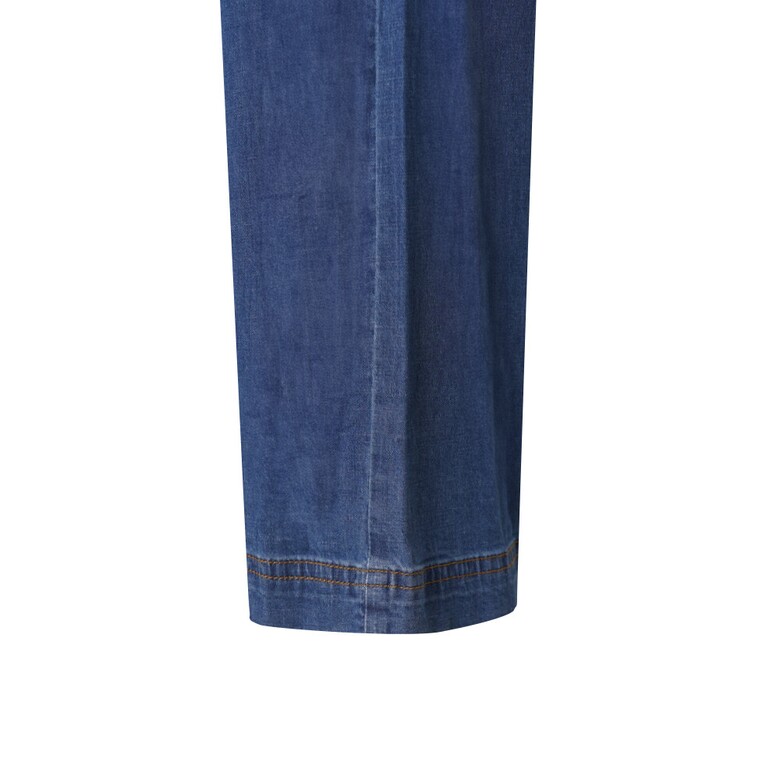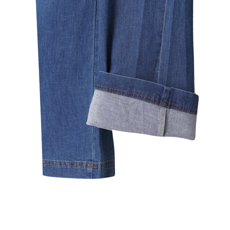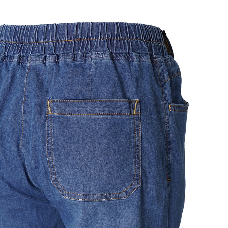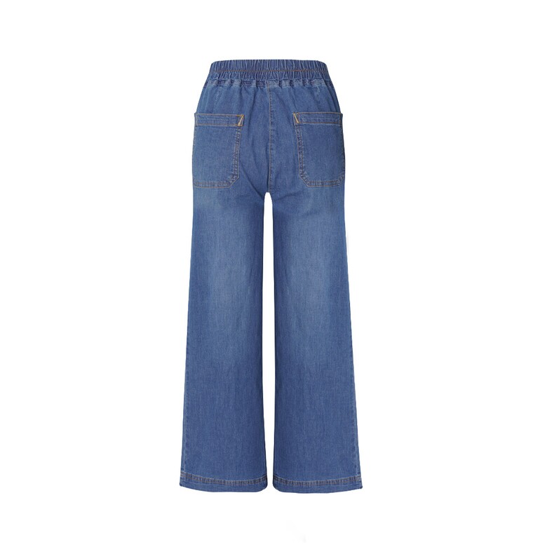전체 밴딩에 와이드한 핏감으로 편한 착용감의 데님팬츠. 테이프와 배색 스티치 포인트로 데일리하게 코디하게 좋은 아이템.