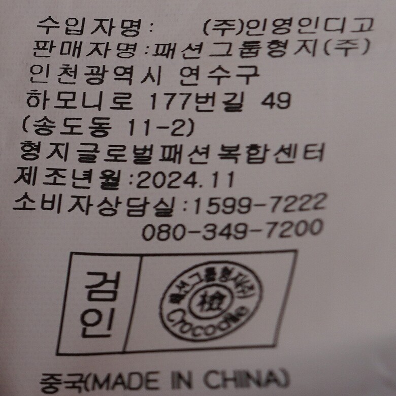 | 1. 제품 소재 (섬유의 조성 또는 혼용률을 백분율로 표시, 기능성인 경우 성적서 또는 허가서) | 상품상세참조 |