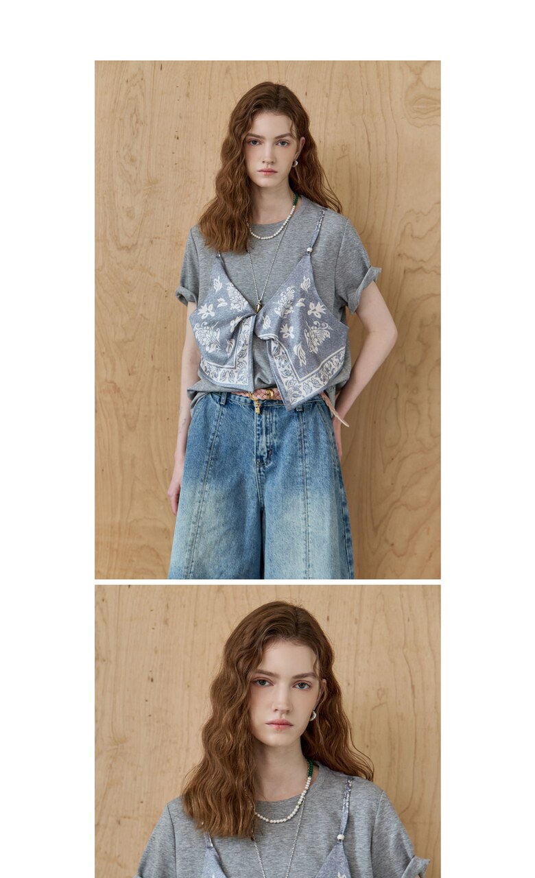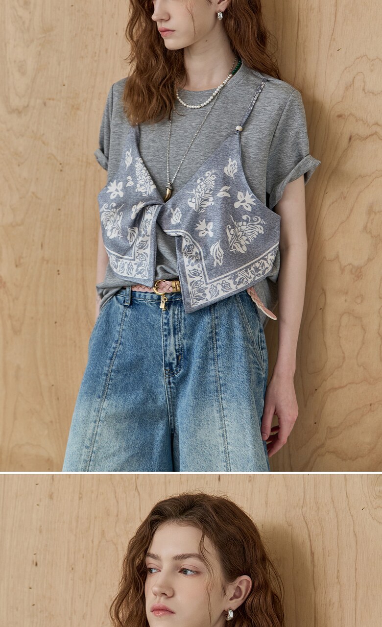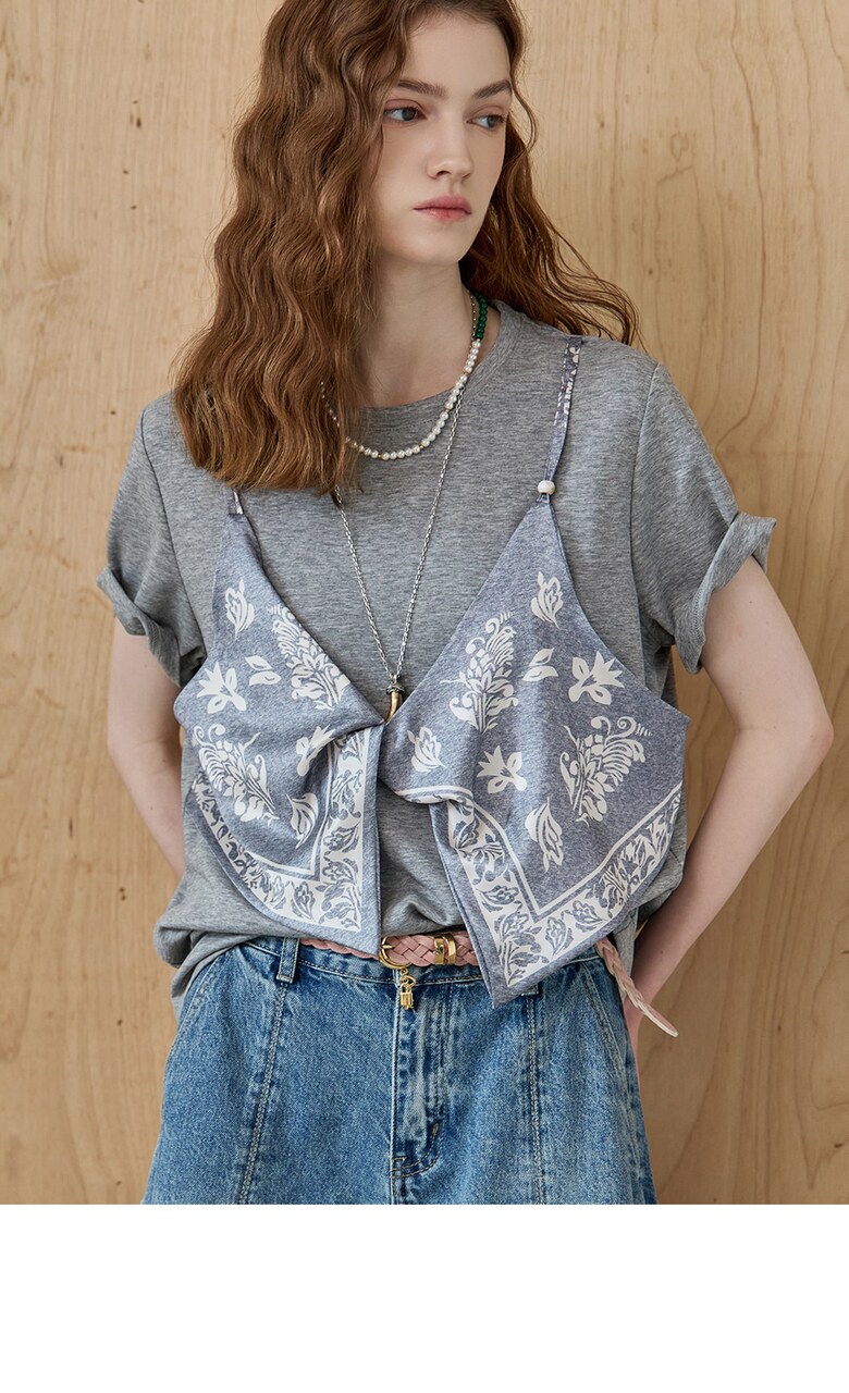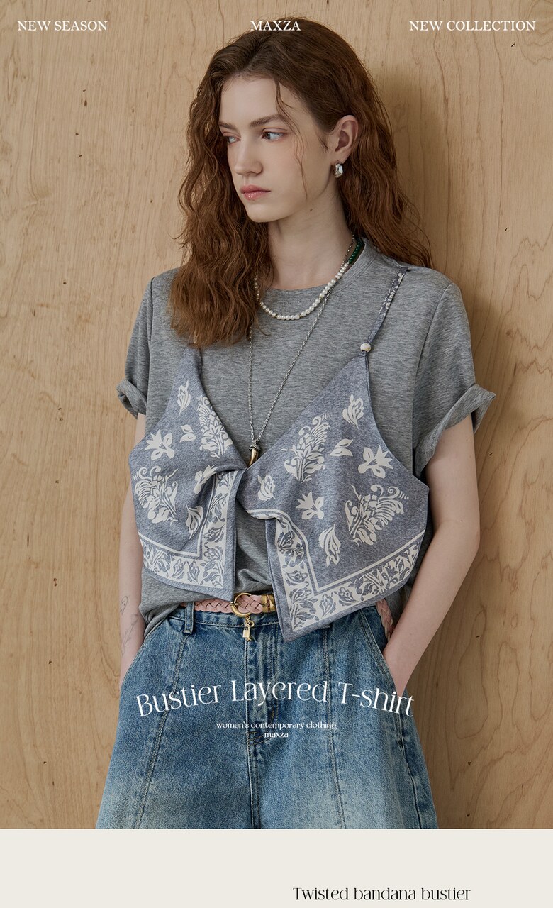 트위스트 반다나 뷔스티에 레이어드 티셔츠