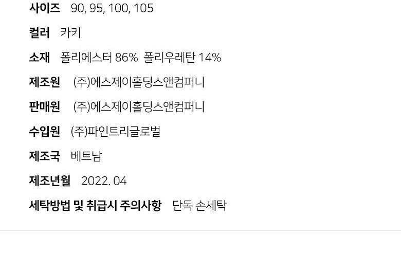 1. 제품 소재 (섬유의 조성 또는 혼용률을 백분율로 표시, 기능성인 경우 성적서 또는 허가서) | 폴리에스터86% 폴리우레탄14% |