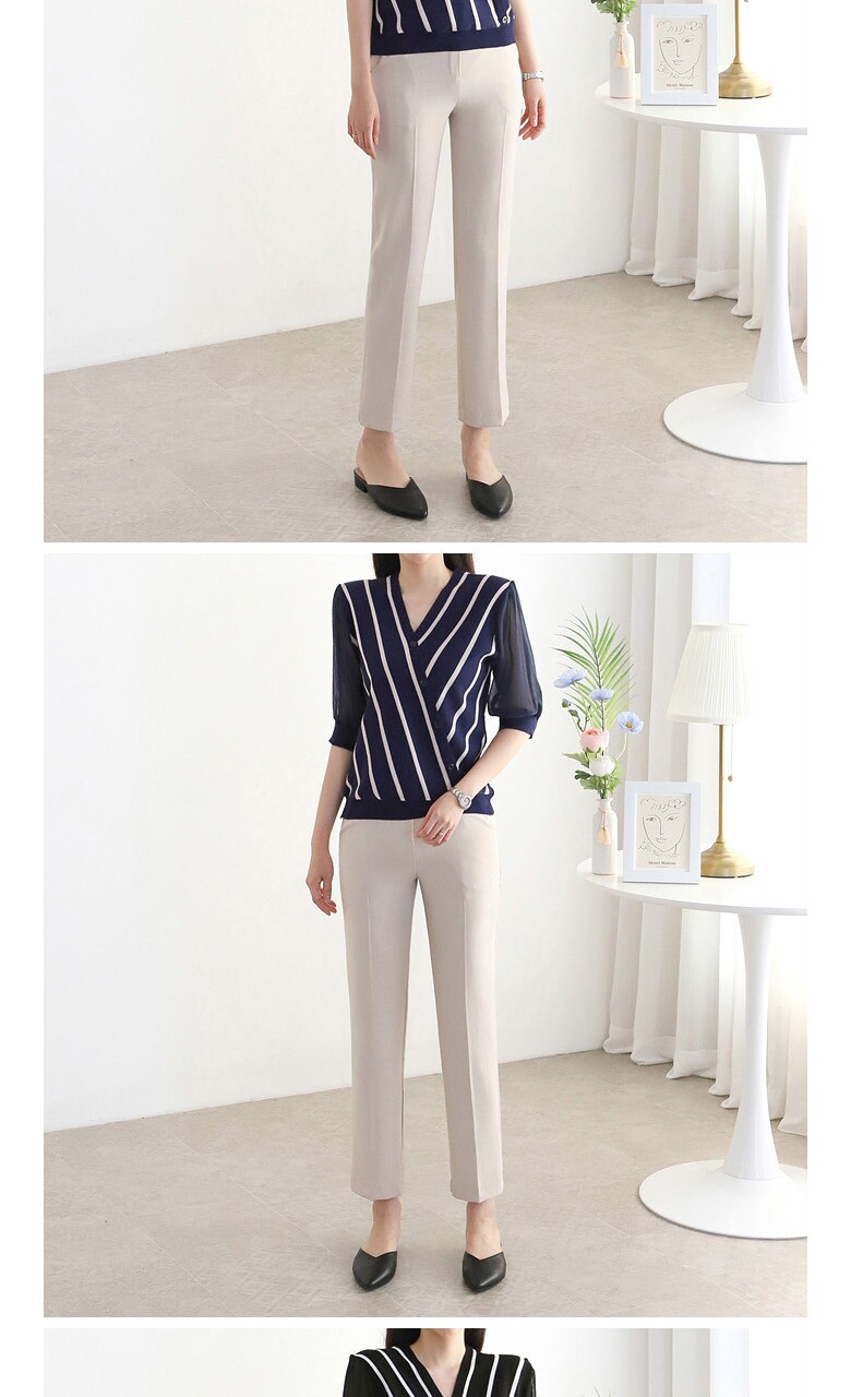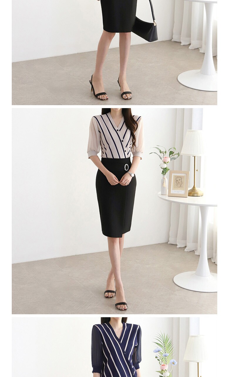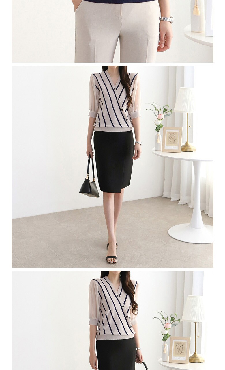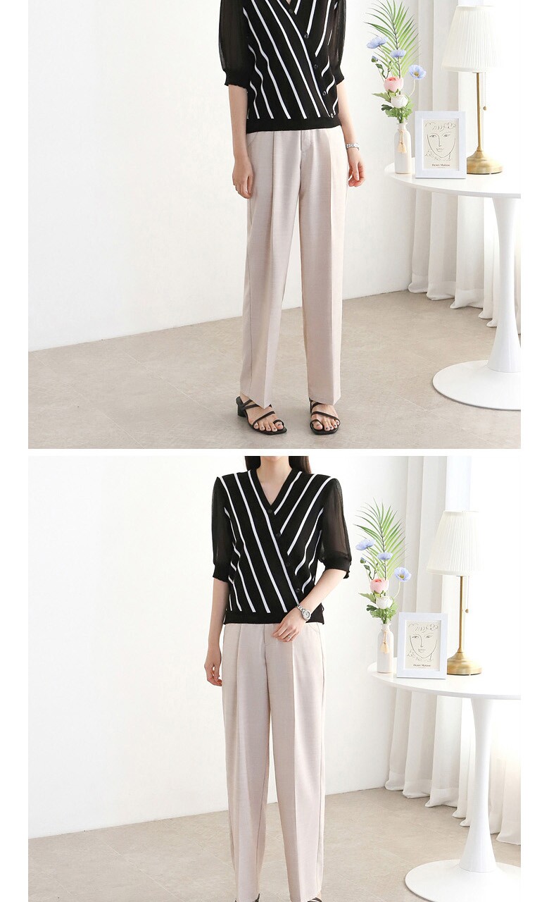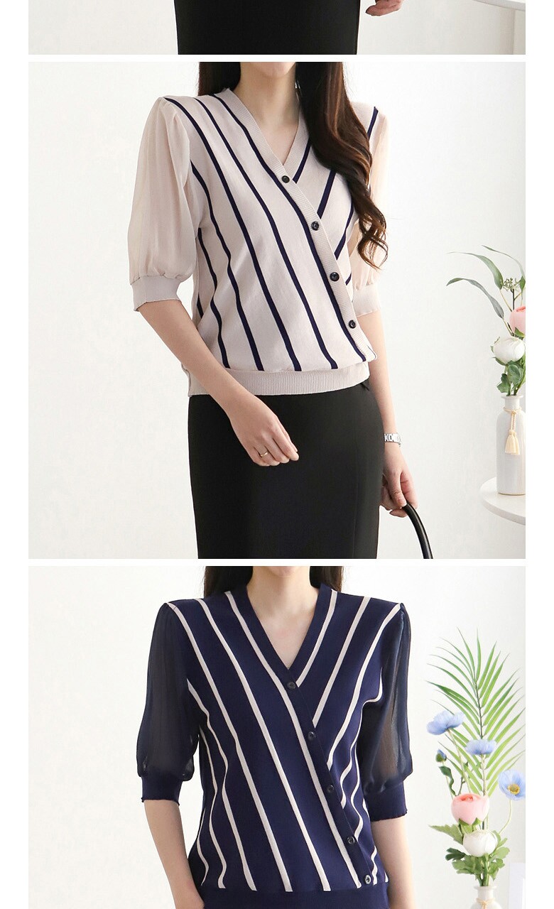 사선 줄무늬 단추 쉬폰소매 반팔 니트_PM2506KN610B