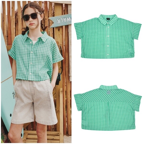 시원한 그린 컬러 체크 패턴 반팔 셔츠입니다.