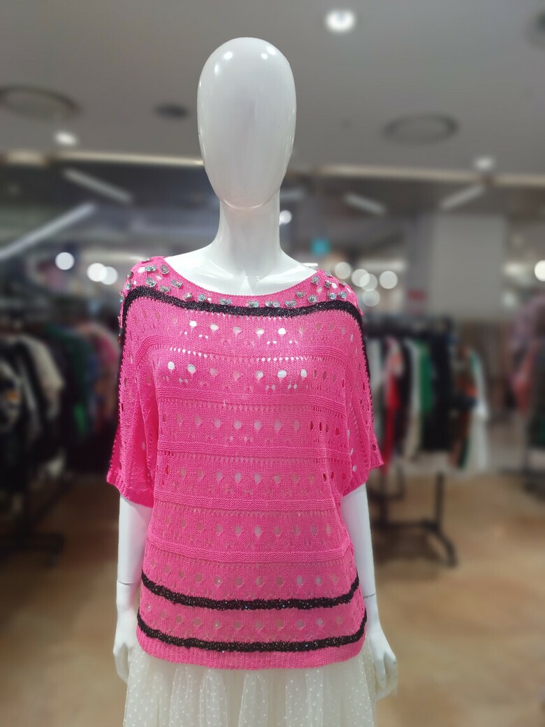 르니앤맥코이 큐빅 포인트 입술넥 나그랑 니트 티셔츠MM08KN409
