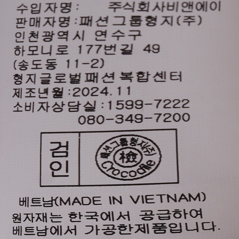 | 1. 제품 소재 (섬유의 조성 또는 혼용률을 백분율로 표시, 기능성인 경우 성적서 또는 허가서) | 상품상세참조 |