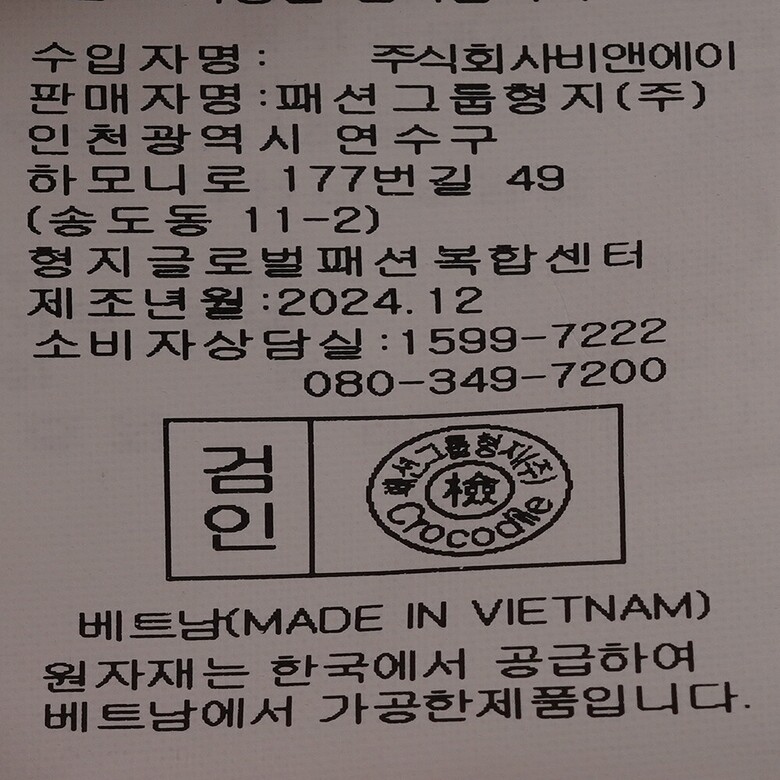 1. 제품 소재 (섬유의 조성 또는 혼용률을 백분율로 표시, 기능성인 경우 성적서 또는 허가서) | 상품상세참조 |