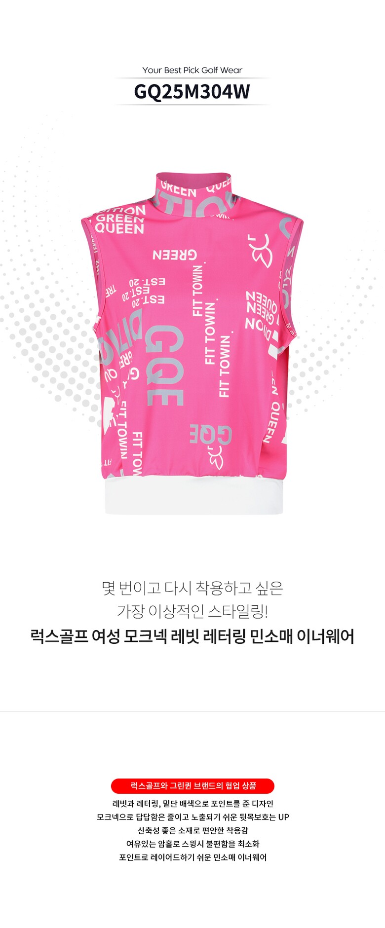 럭스골프 여성 모크넥 레빗 레터링 민소매 이너웨어 GQ25M304W