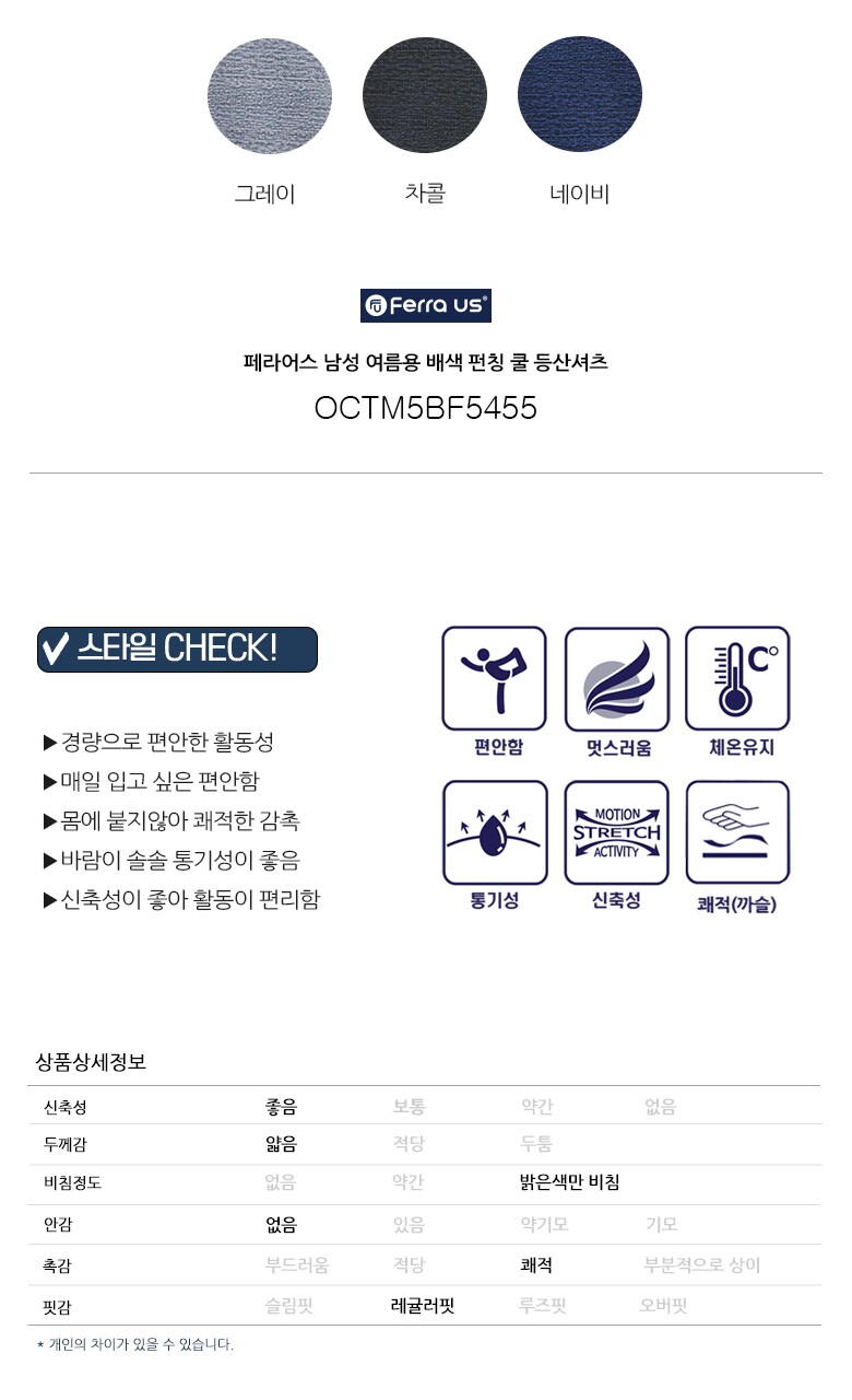 골피아 남성 여름용 배색 펀칭 등산셔츠 OCTM5BF5455