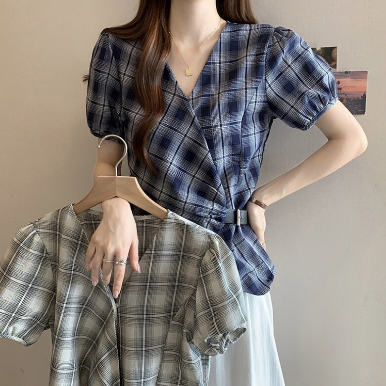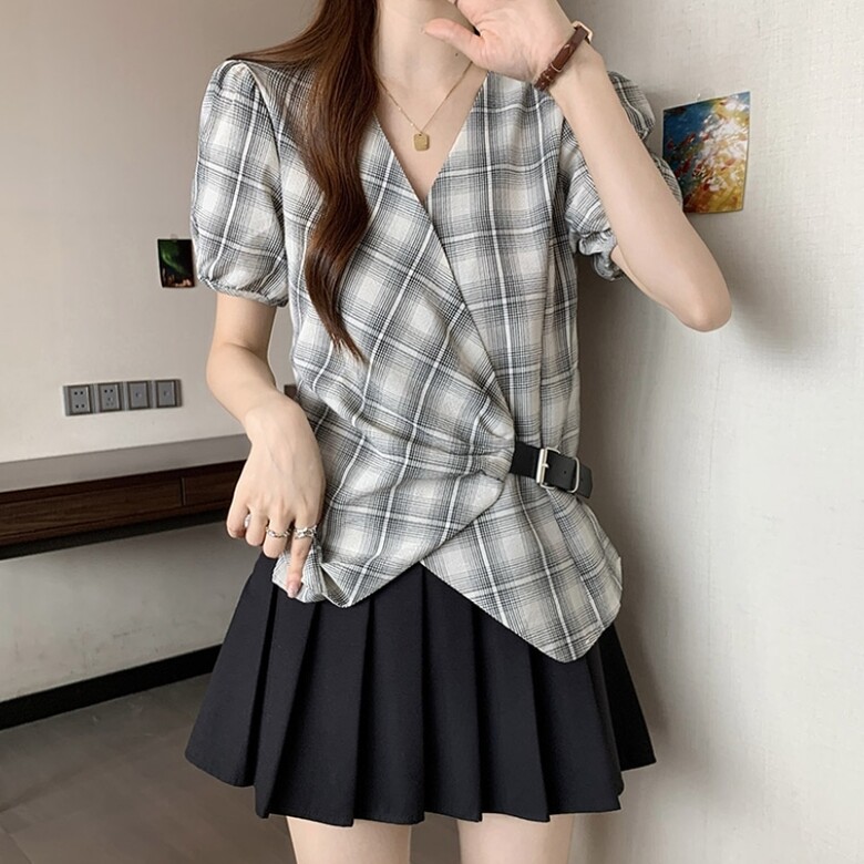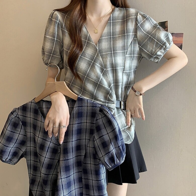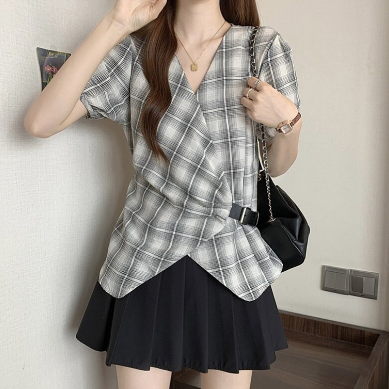- #휴드 #누엘드체크무늬V넥셔츠2color #휴드 #HUD
