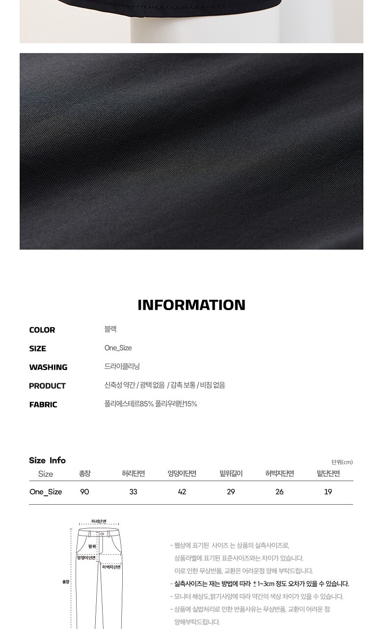 1. 제품 소재 (섬유의 조성 또는 혼용률을 백분율로 표시, 기능성인 경우 성적서 또는 허가서) | 폴리에스테르85% 폴리우레탄15% |