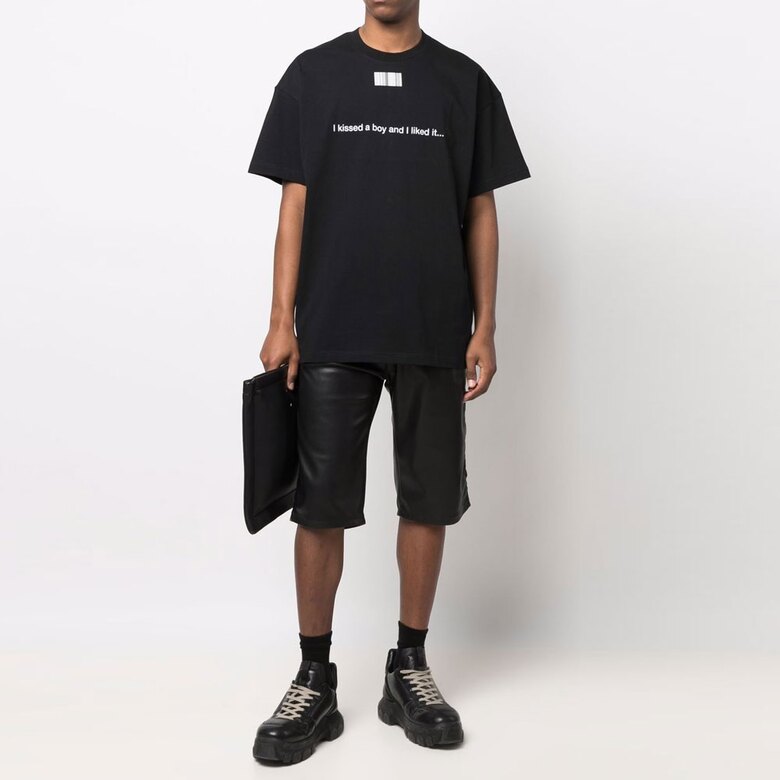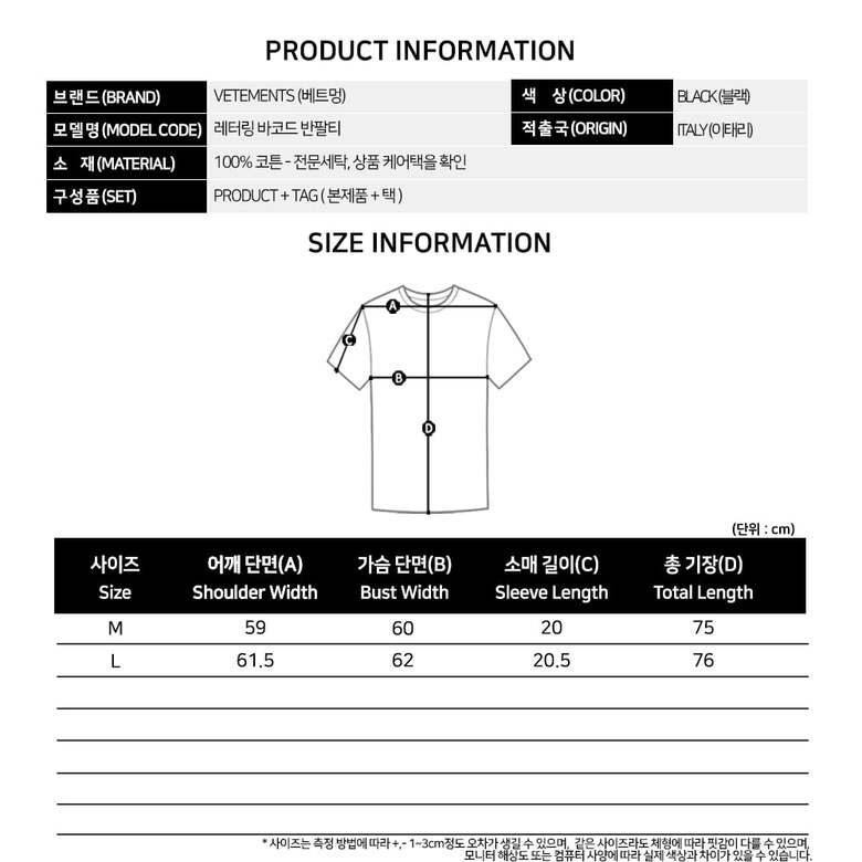 [명품] 베트멍 22SS 레터링 바코드 블랙 반팔티 VL12TR480B BLACK