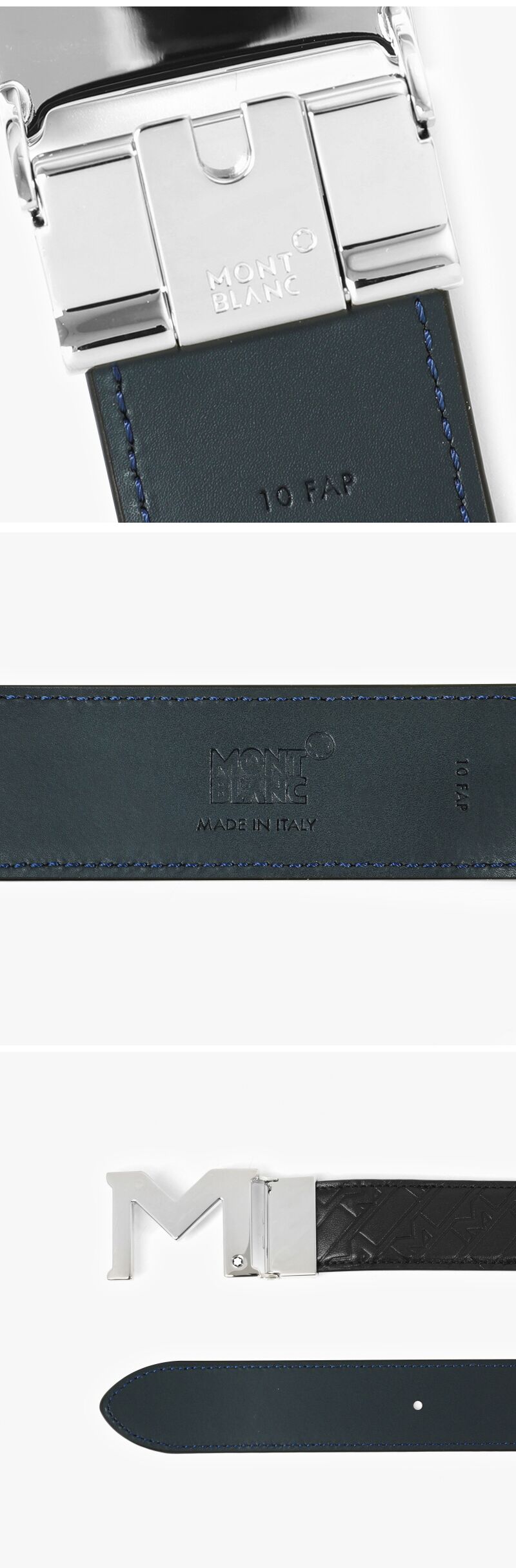 [명품] 몽블랑 128787 M_Gram 4810 M 버클 블랙/블루 양면 벨트
