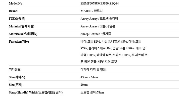 [명품] 마르니 SHMP0078U0 P3860 Z1Q44 이스트 웨스트 라피아 라지 탑 핸들 토트백