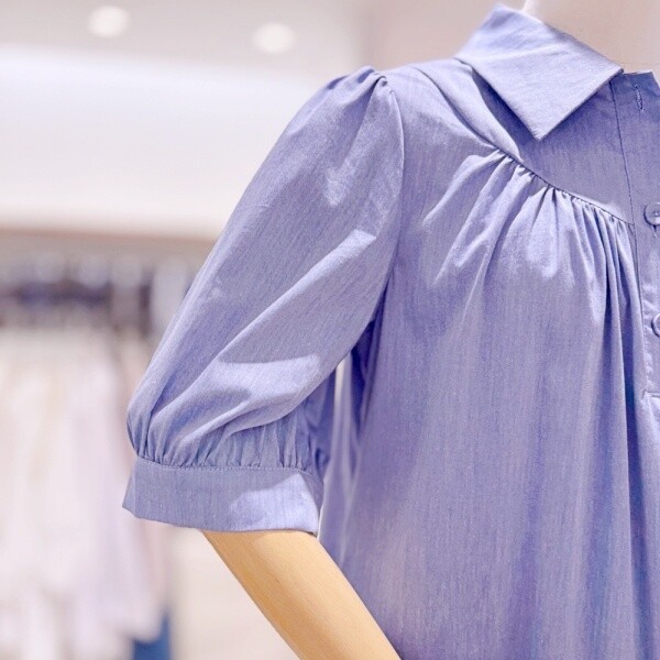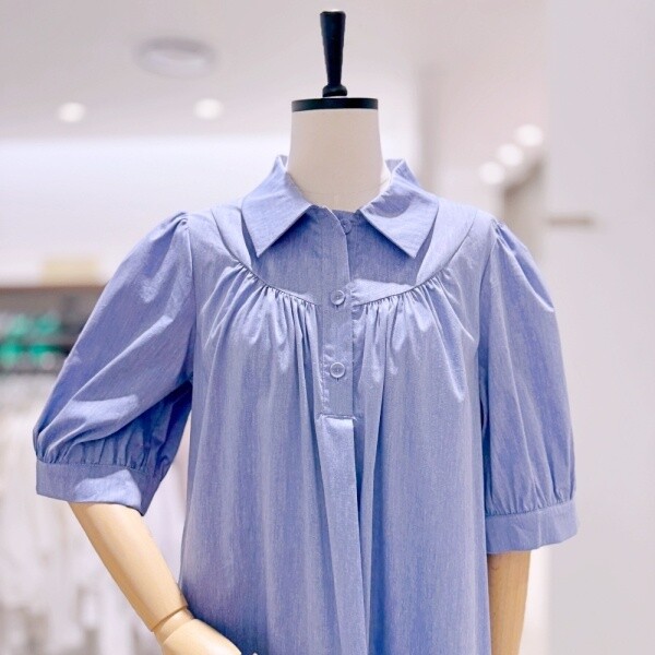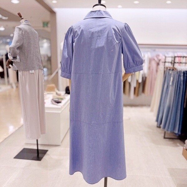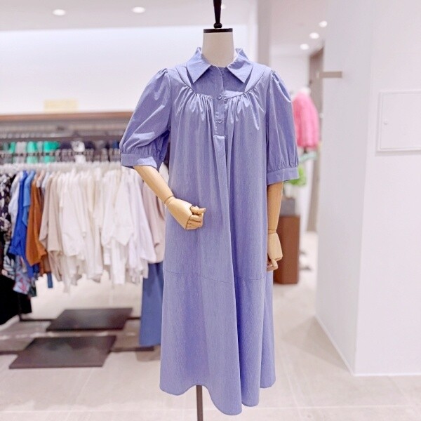 M24OP1505_퍼프 소매 셔링 원피스