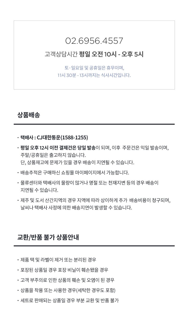 6. 세탁방법 및 취급시 주의사항 | 상품상세 참조 |