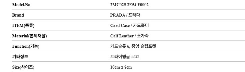 프라다 2MC025 2E54 F0002 그레인 트라이앵글 로고 카드지갑