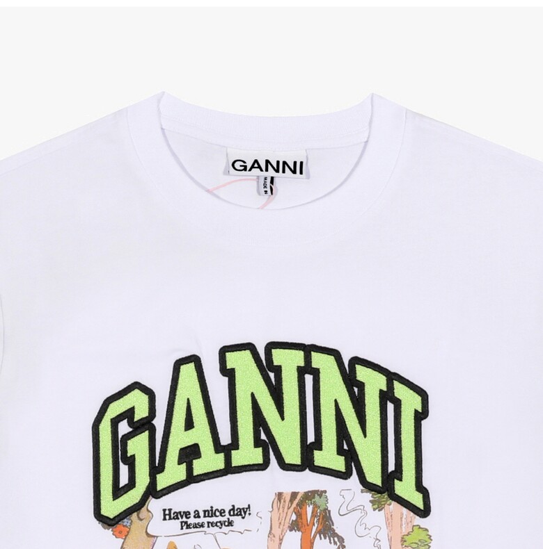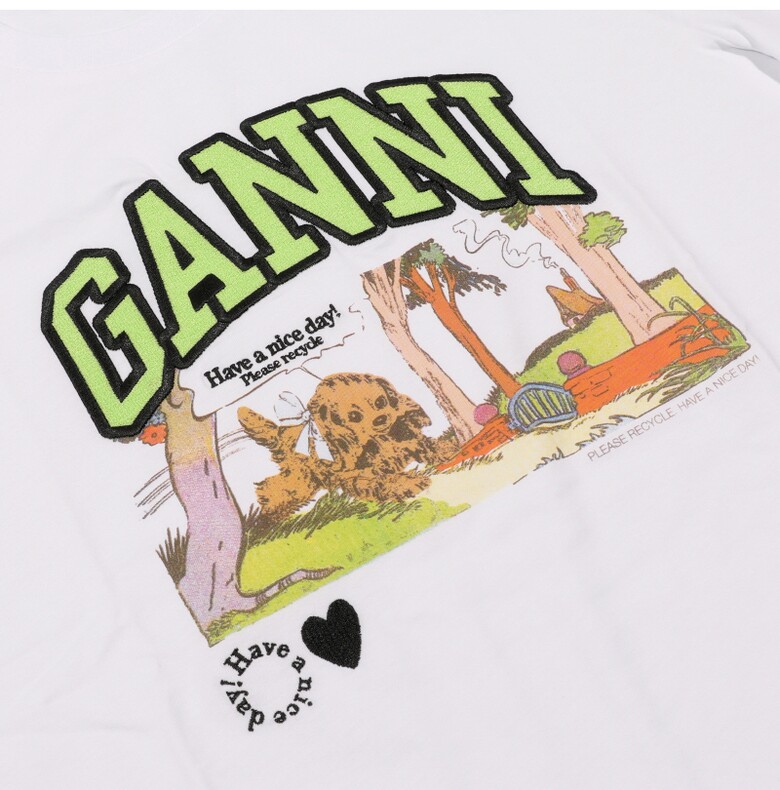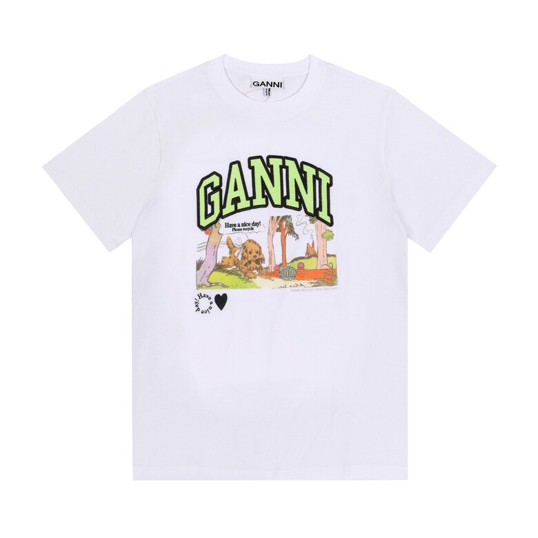 GANNI T4288 151 만화 퍼피 로고 프린트 여성 반팔티