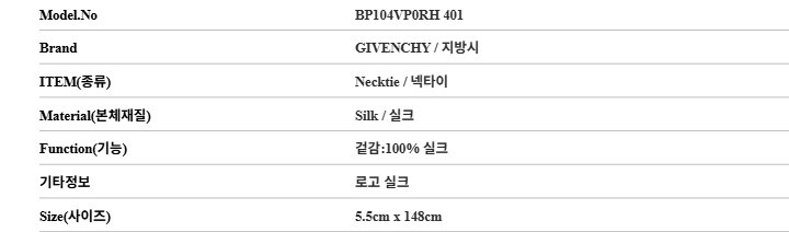 지방시 넥타이 BP104VP0RH 401 4G 로고 실크 남성넥타이 당일발송