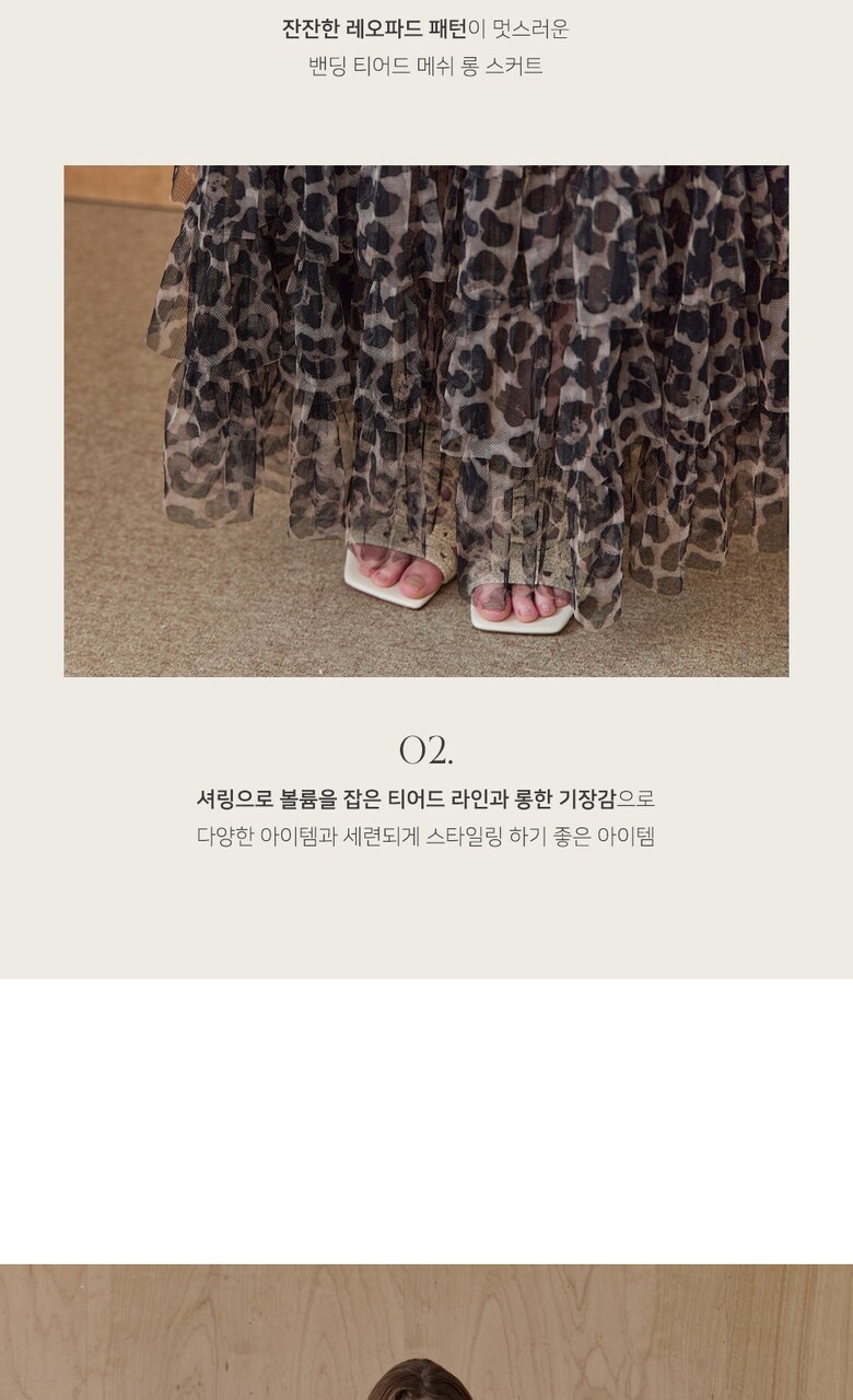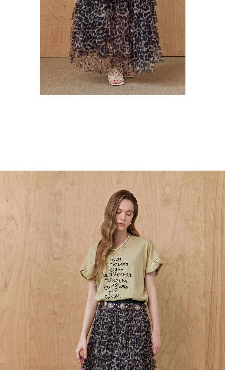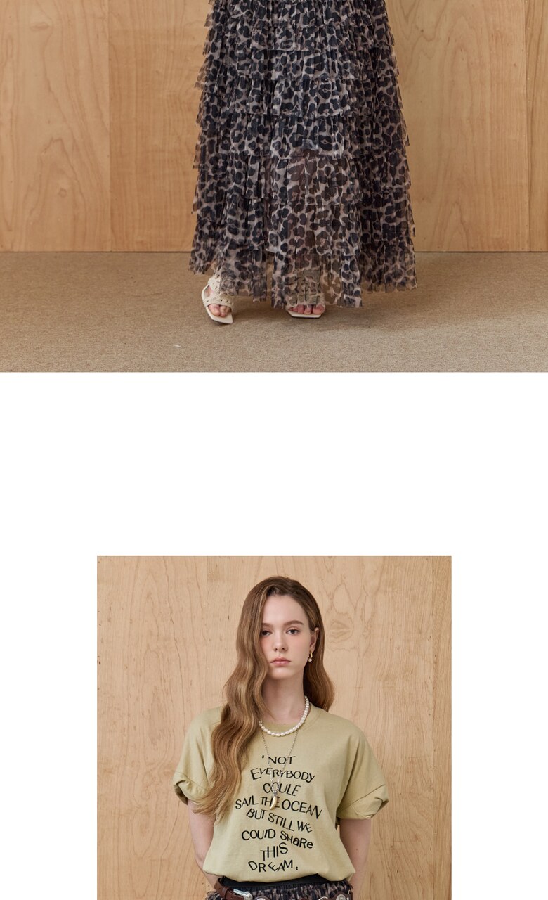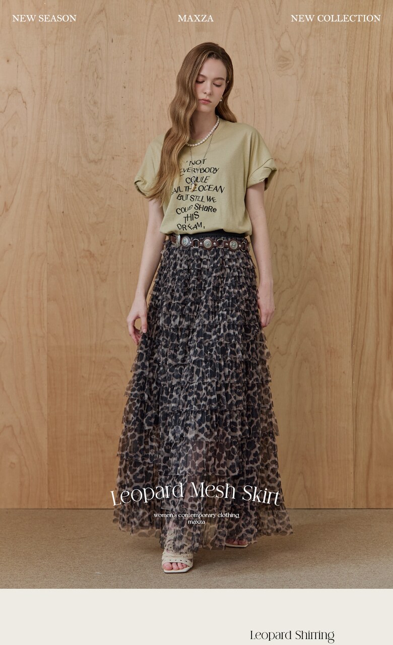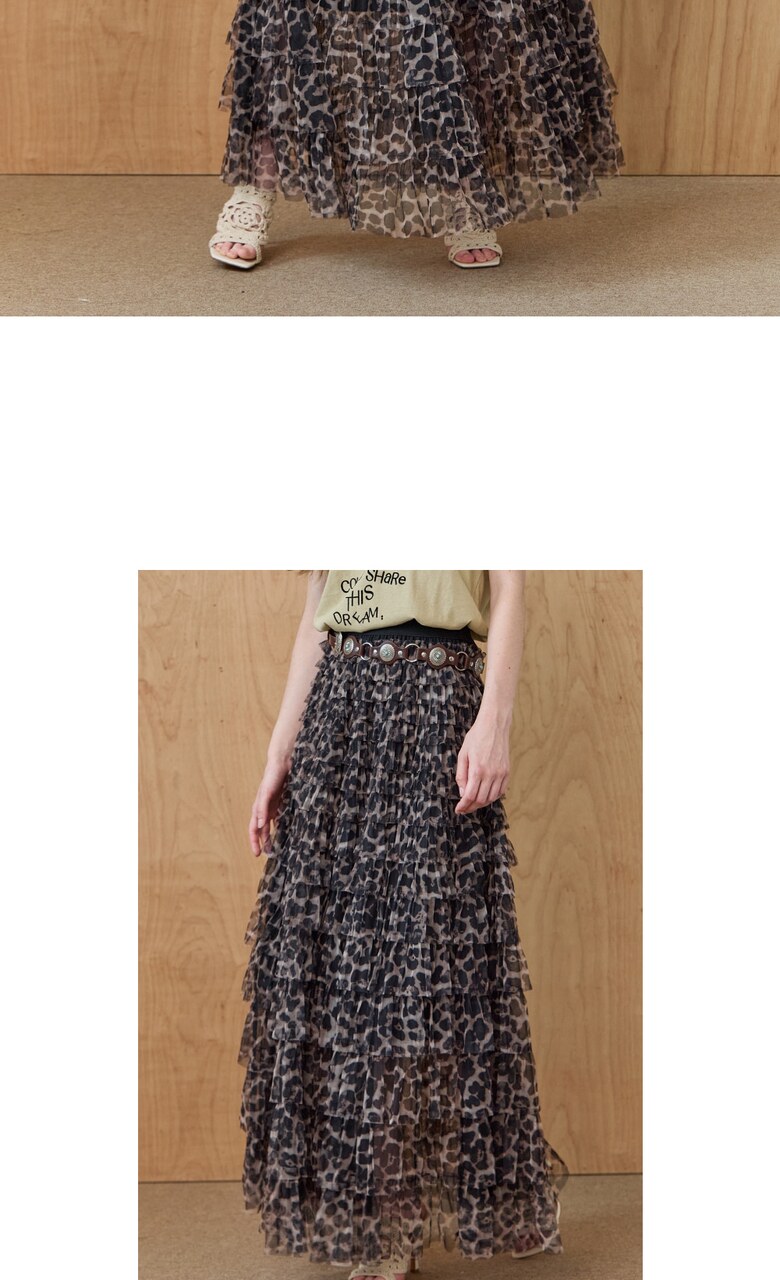레오파드 셔링 티어드 메쉬 롱 스커트