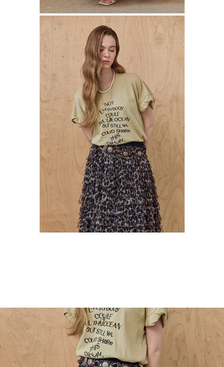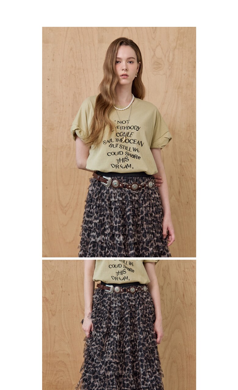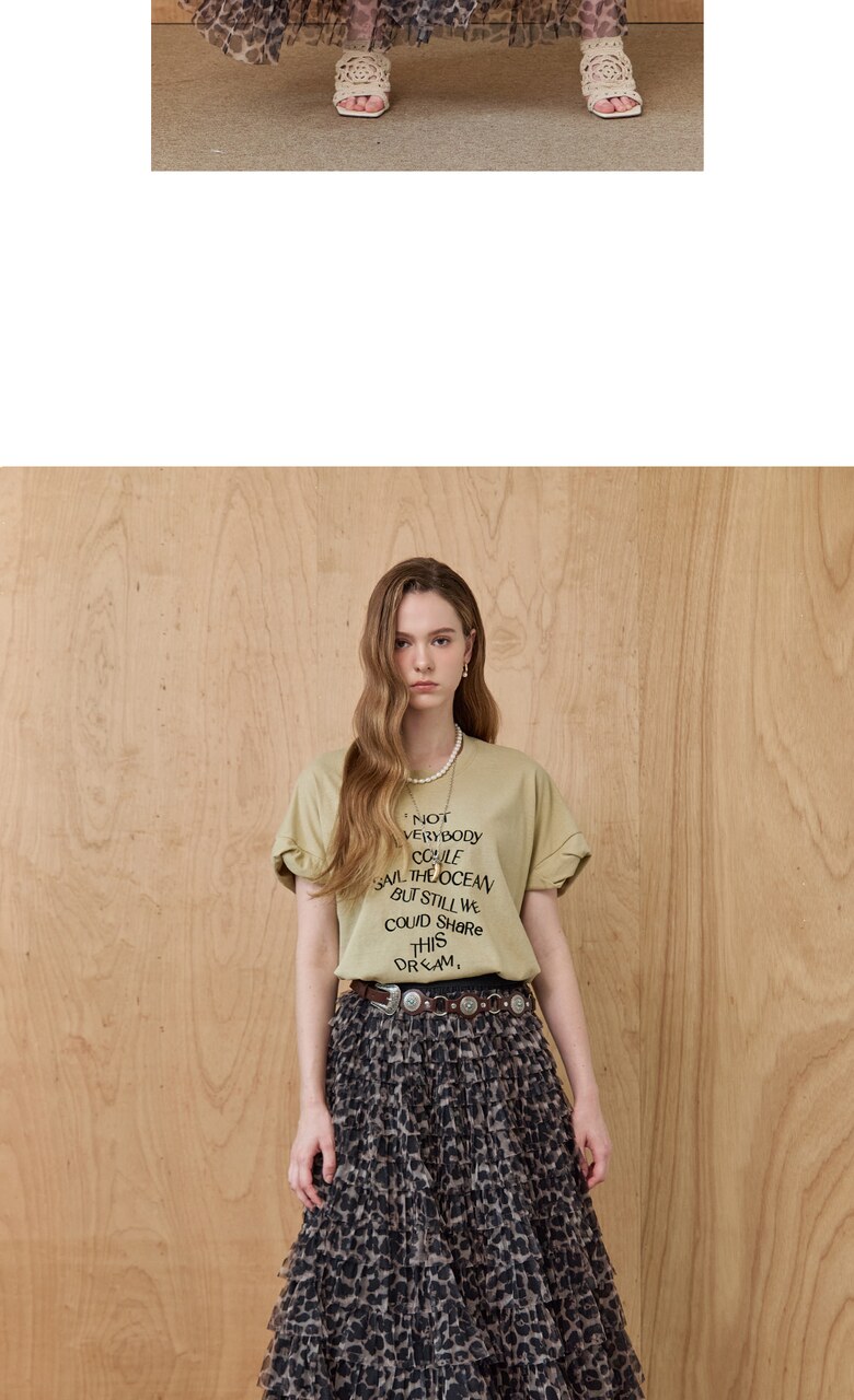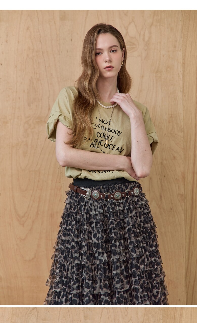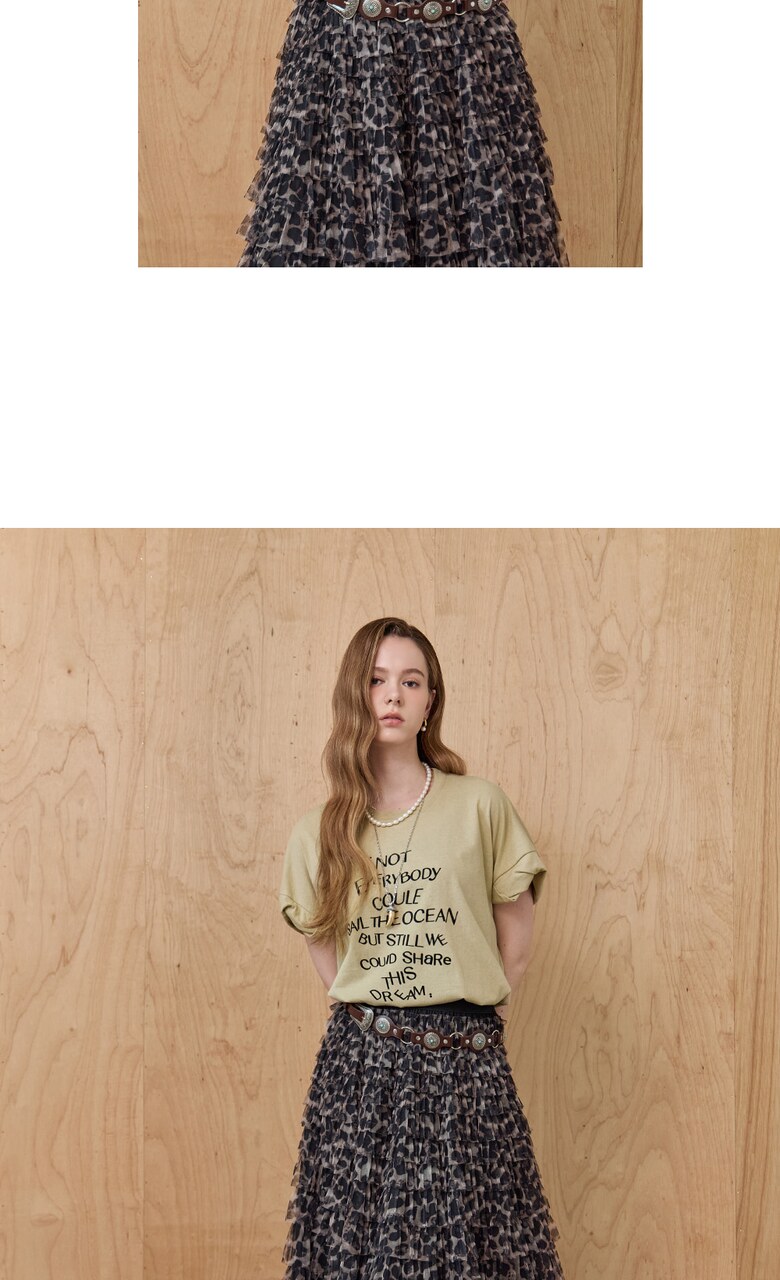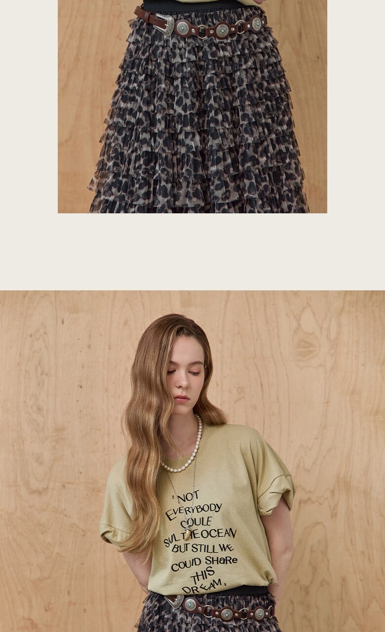 레오파드 셔링 티어드 메쉬 롱 스커트