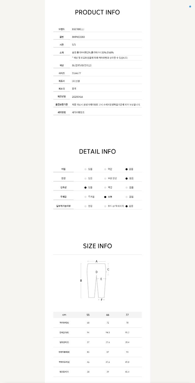 1. 제품 소재 (섬유의 조성 또는 혼용률을 백분율로 표시, 기능성인 경우 성적서 또는 허가서) | 상품상세참조 |