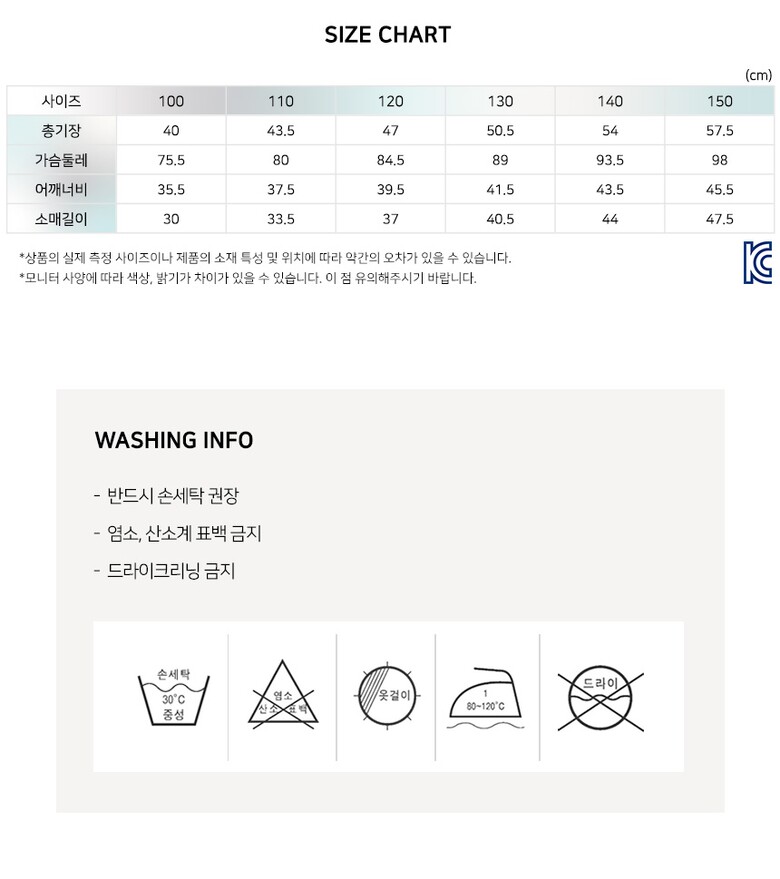 3. 치수 | 100,110,120,130,140,150 |