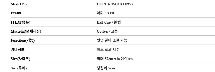 아미 UCP116 AW0041 0953 하트 로고 자수 볼캡 모자