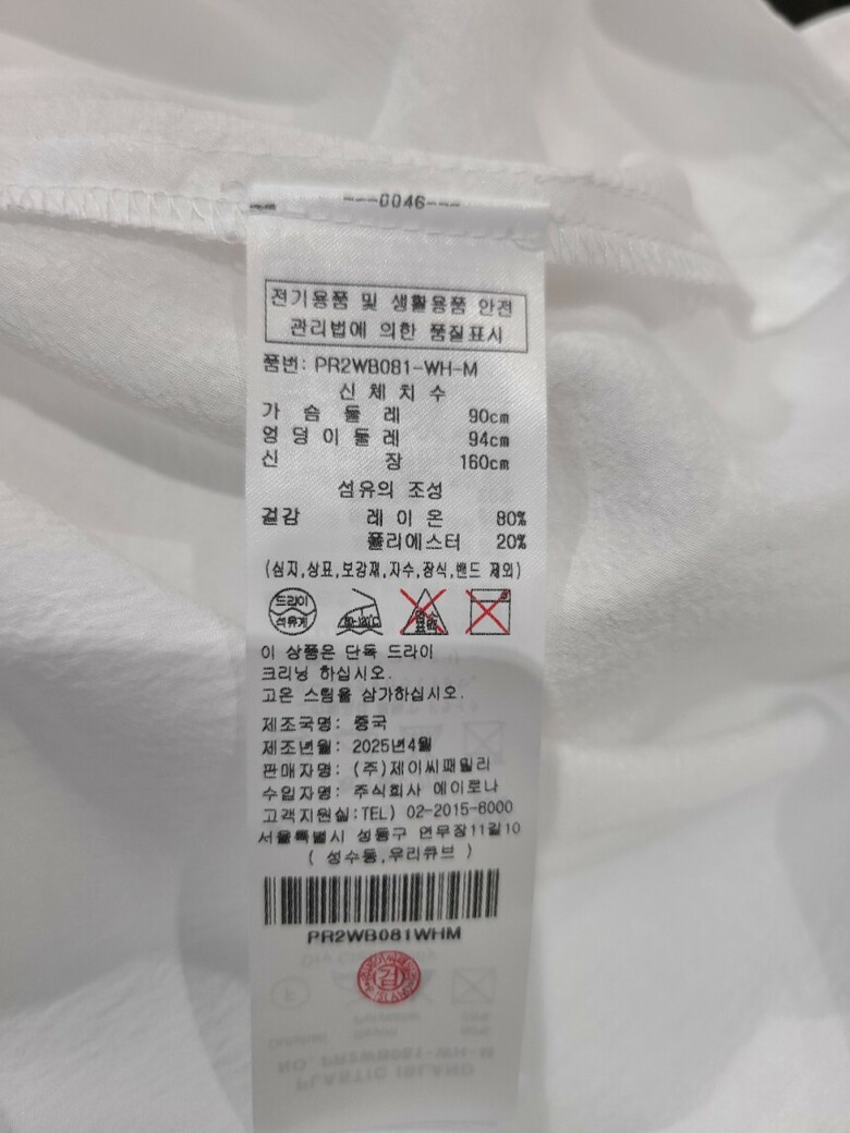 | 1. 제품 소재 (섬유의 조성 또는 혼용률을 백분율로 표시, 기능성인 경우 성적서 또는 허가서) | 레이온 80%, 폴리에스테르 20% |