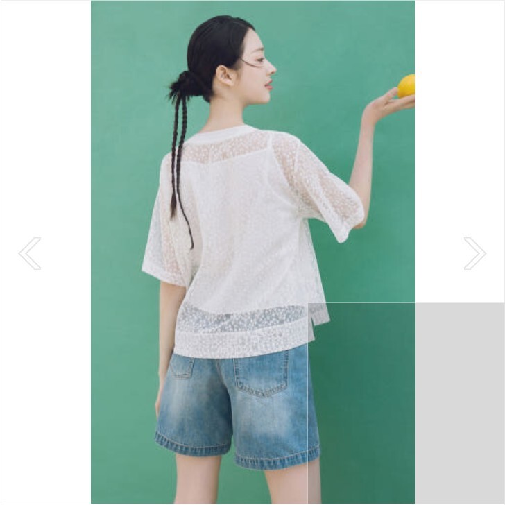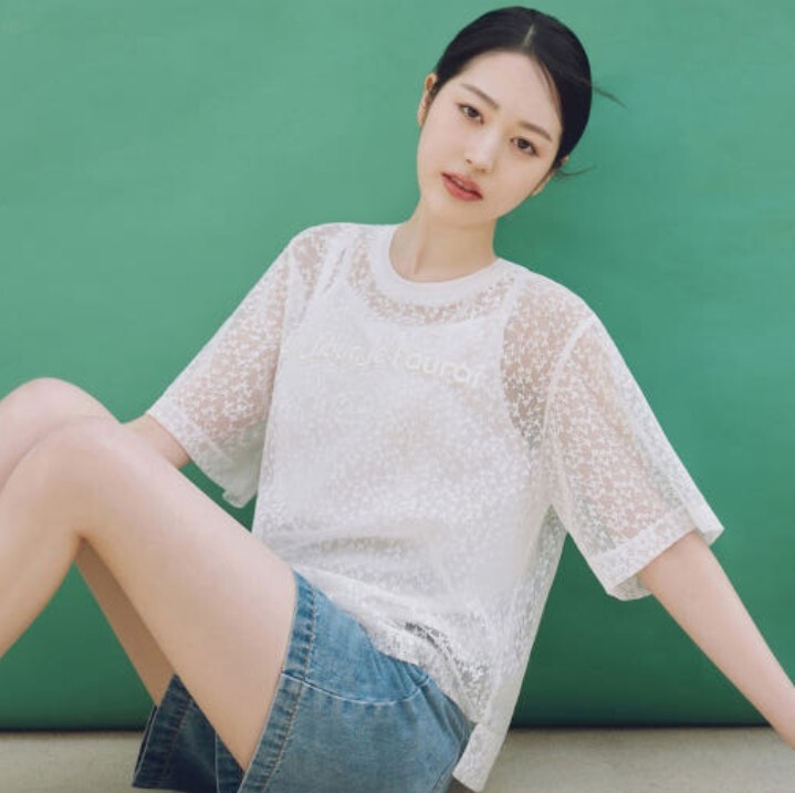시스루 소재를 사용해 청순한 분위기를 자아내는 블라우스입니다.
